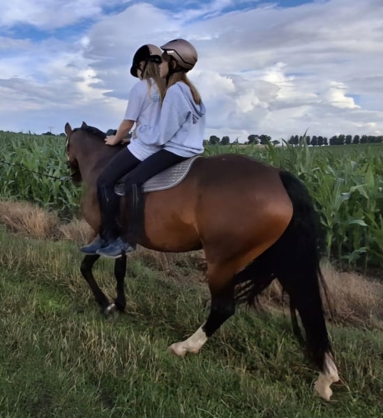 Für unsere 8-jährige Stute suchen wir ein neues, liebevolles Zuhause. Sie ist eine absolut ehrliche, freundliche und umgängliche Pferdedame, die den Kontakt zum Menschen sehr genießt und sich im täglichen Umgang stets zuverlässig zeigt. Diese charmante Stute besticht durch ihren freundlichen Charakter und ihre Lernbereitschaft. Sie ist sowohl für erfahrene Reiter als auch für ambitionierte Einsteiger geeignet. Ihr ausgeglichenes Temperament und ihre Bewegungsqualität machen sie zu einer vielversprechenden Partnerin. Sie ist 152cm groß und arbeitet stets motiviert mit, lernt schnell und hat Freude an der gemeinsamen Arbeit mit ihrem Menschen. Im Gelände ist sie sowohl allein als auch in der Gruppe immer sicher unterwegs. Ein tolles Allround-Pony, das mit der richtigen Person weiter wachsen wird – ob im Freizeitbereich, auf kleineren Turnieren oder einfach als zuverlässige Begleiterin im Alltag. Sie ist gesund, regelmäßig geimpft und schmiede- sowie verladefromm. Raya läuft barhuf. Bei starker Insektenbelastung zeigt sie eine leichte Empfindlichkeit, die sich mit guter Haltung und Pflege bestens kontrollieren lässt. Wir suchen für sie ein 5-Sterne-Zuhause bei erfahrenen Menschen, die Freude daran haben, ein talentiertes Pony weiter zu fördern. Raya wird nur in beste Hände abgegeben! Auf den letzten zwei Bildern ist ihr Vater zu sehen.
