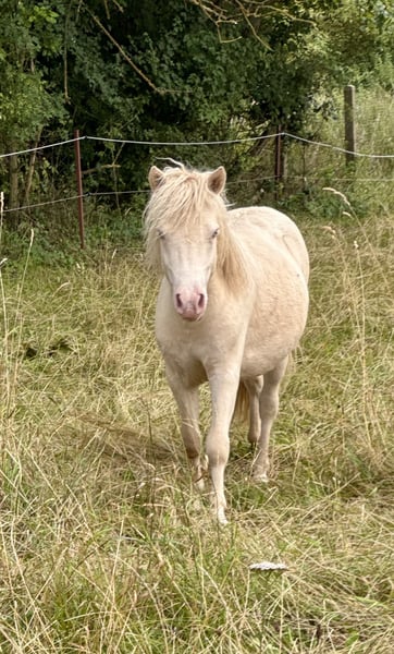Looking for a wonderful new home for my little Vajavo. Born in 2024, Vajavo will reach an adult height of approximately 102 cm. He received the foal premium as a foal. His sire is Meerhusens Valentino, and his dam is a daughter of Whiteboy. He has a beautiful Perlino color, tested as heterozygous. Vajavo is raised here in a herd of young stallions in an open stable and on pasture. He is familiar with everything a young horse should know, such as tractors, dogs, and children. He is currently insecure around electric fences but is well-handled when it comes to loading. He is regularly dewormed and trimmed. Vajavo does not bite or kick; however, as he is still very young, I do not specifically market him as a children's pony. A lovely type, affectionate, and simply a joy to be around. For further information, please feel free to contact me by phone.