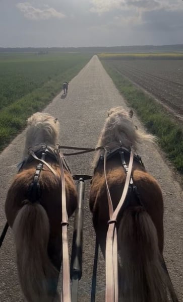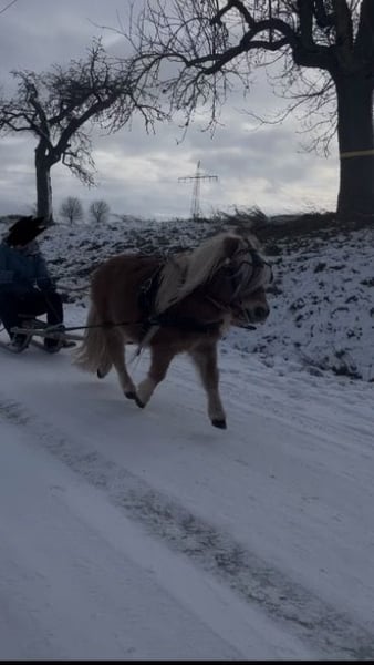 Zum Verkauf stehen zwei liebe Shetty-Jungs (werden im Mai 4 und 5 Jahre alt) mit einem Stockmaß von ca. 90 cm. Beide besitzen einen grünen Pass und wurden bereits erfolgreich vor der Kutsche eingesetzt. Trotz ihres jungen Alters haben sie schon WBO-Turniererfahrung gesammelt und sich dabei absolut brav, gelassen und ohne Aufregung gezeigt – auch beim ersten Turnier. Sie sind in den Disziplinen Kegelfahren, Hindernisfahren und Geländefahren gestartet. Die beiden sind ein eingespieltes Gespann und wurden sowohl einspännig als auch zweispännig sowie im Tandem gefahren. Auch das Schlittenfahren macht sehr viel Spaß. Neue Situationen meistern sie stets ruhig und souverän. Im Umgang sind sie sehr freundlich und unkompliziert, auch Kinder können problemlos mit ihnen umgehen. Sie eignen sich hervorragend als Handpferde, auch mit Stuten. Beide zeigen kaum Hengstmanieren. Im Gelände sind sie sicher unterwegs – auch einspännig kein Problem. Beim Hufschmied sind sie brav. Durch ihr ruhiges Wesen und ihre Nervenstärke sind sie ideal für Anfänger geeignet. Man kann die zwei auch ohne Probleme überall alleine einspannen. Sie bleiben ruhig und geduldig stehen. **Kurz zusammengefasst:** * 4 & 5 Jahre alt (im Mai) * Shetty-Hengste, ca. 90 cm Stockmaß * Grüner Pass * WBO-Turniererfahrung (Kegel-, Hindernis- & Geländefahren) * Einspännig, zweispännig & Tandem gefahren * Schlittenfahren problemlos * Sehr brav, gelassen und nervenstark (auch bei neuen Situationen) * Kinderlieb & unkompliziert im Umgang * Gute Handpferde, auch mit Stuten * Kaum Hengstmanieren * Gelände sicher * Problemlos beim Hufschmied * Anfängergeeignet * keine Rehe oder Ähnliches * sind E-Zaun sicher Verkauf ausschließlich als Gespann. Preis für beide. Bei Interesse oder für weitere Informationen gerne melden.