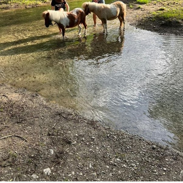 Beautiful, sweet, 5-year-old, brown and white pied, mini Shetland gelding with papers, height approx. 84 cm, very trusting, perfect for children for carriage driving and riding, also suitable for therapeutic riding. More information and further photos and videos by phone or whatsapp. Delivery possible.