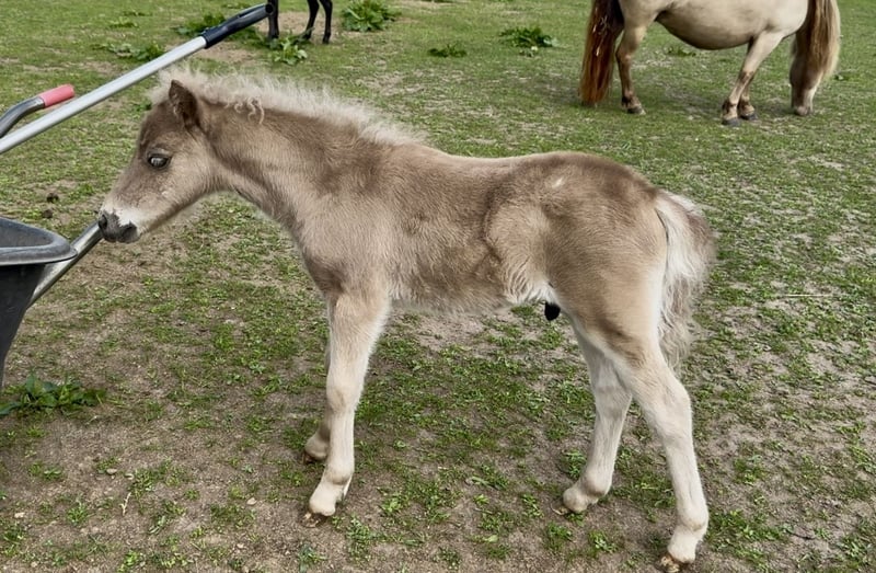 5* Home Wanted!!! I am looking for a great new home for my little "Silver Snowflake von der Prignitzweide" starting mid-November. Snowflake is a German Partbred Shetland pony with papers. He was born in May 2025. He has a relatively rare color; he is a silver-black tiger spotted pony and homozygous (purebred) black, which means he will not produce chestnuts. Snowflake has two small white spots and will continue to develop his markings as he ages. A wonderful little guy who is already showing off his great gaits. His final height will be around 105 cm. His mother is the state premium/ performance mare/ champion mare Flora vom Gothensee, who successfully completed her performance test with a dream score of 8.78. His father is the licensed and performance-tested stallion Sun Dancer. His half-brother from last year was the reserve champion of the foal championship in Redefin 2024, receiving a score of 10 three times for movement and is currently in stallion training. I would also love to place this wonderful boy in the hands of a breeder, but that is of course not a must. Until his departure, he will get to know everything that is part of the foal ABC. Additionally, he will be presented at the foal show. Snowflake will be regularly dewormed and trimmed. If you are interested in this wonderful little man, please feel free to reach out.