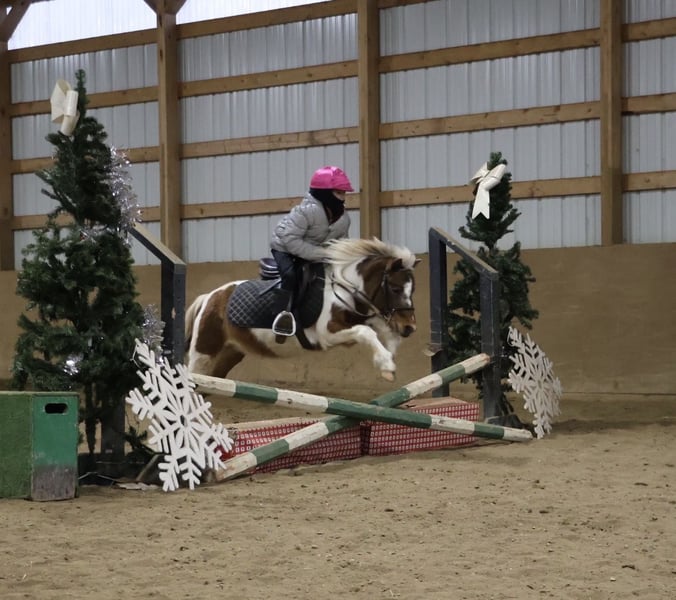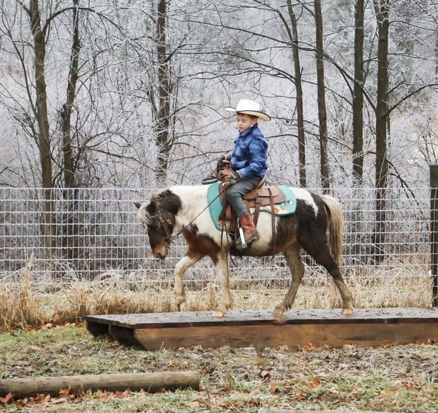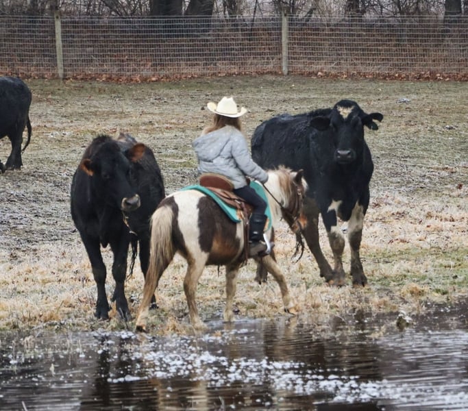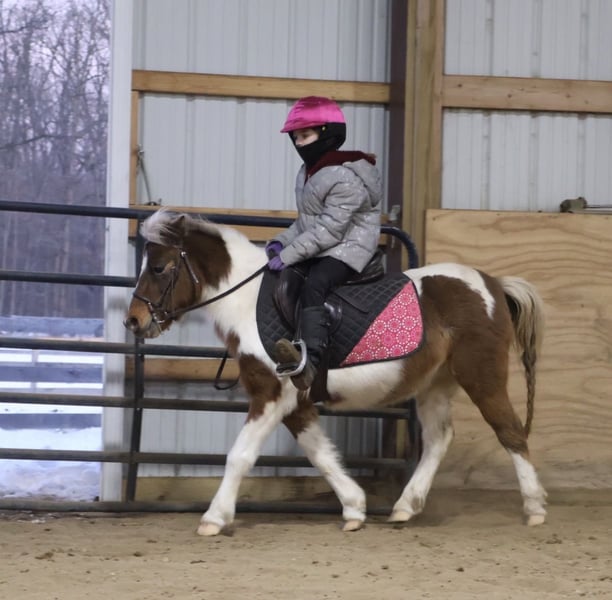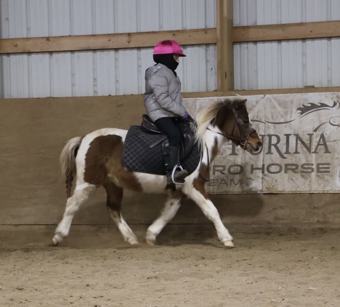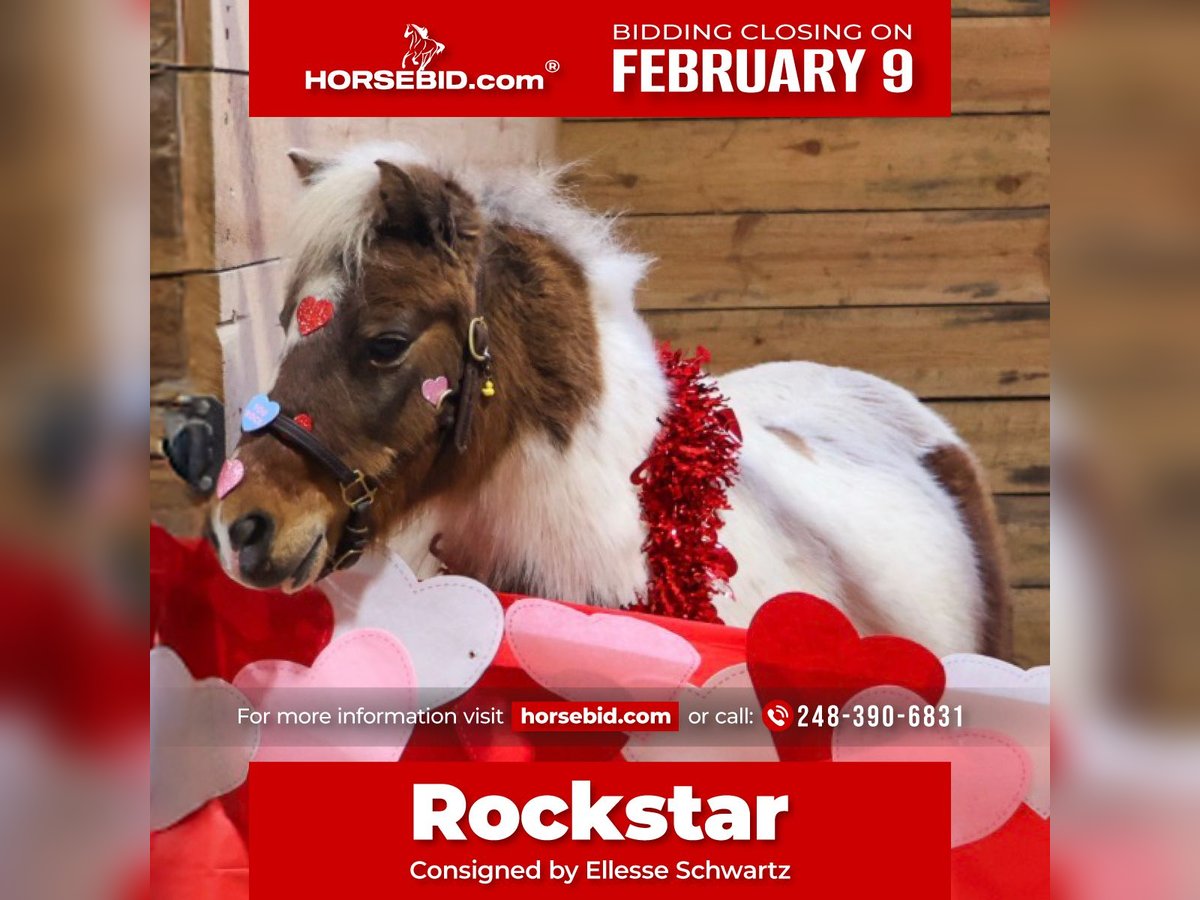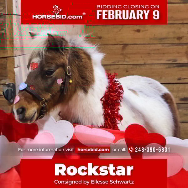 ❤️🔥𝑩𝒆 𝑴𝒊𝒏𝒆 𝐒𝐄𝐋𝐄𝐂𝐓❤️🔥 Happening now thru MONDAY | FEBRUARY 9th - Available EXCLUSIVELY on HorseBid's website! For more details and to register visit: www.Horsebid.com CONSIGNOR CONTACT: Ellesse Schwartz 248-390-6831 LOCATION: Howell, MI BREED: Shetland REGISTERED: No REGISTERED NAME: Rockstar COLOR: Tricolored paint HEIGHT: 40 in AGE: 12 GENDER: Gelding Meet Rockstar! This little love bug is an adorable 40 inchs tall and comes wrapped in a tri-color painted package! He is 12 years old with a resume several miles long! From ranch pony deluxe to English show pony he has been there and done it! Don’t let his size fool you—Rocker shows up every day with the work ethic of a big-horse and a let's do it attitude. He has all the buttons of a big horse making him perfect to learn on and grow with while keeping the little ones on a pony the perfect size for kids. He’s been around cattle, knows his job, and confidently handles real ranch work with ease. From checking cattle to helping move them he will go right to work! In the arena Rocker is a fun ride. He will walk trot and canter with ease, he knows his leads and has excellent flying lead changes! He is easy for the kiddos to steer. Rocker jumps around full courses and is a cute as a button doing so. He has been to many play day events and jr rodeos and has been on the barrel pattern and poles. He is handy, responsive, and easy to get along with. He’s also excellent with dogs, goats and sheep he doesn’t mind them running alongside. He will follow the kiddos into the living room if you would allow him in and will hang on the couch as the kids read him a story, color a picture or what ever they may come up with to do. Rocker has great manners. Kids can lead, groom and saddle him with confidence. He is gentle, while still having plenty of try and heart for a kid who wants to be involved more advanced riding. This is the kind of pony that builds confidence, teaches responsibility, and makes memories that will last a lifetime. He has seen many miles on the trails, cross country courses and back road riding. If you're looking for a pony with solid training, experience and kid miles in just about any discipline Rocker is your guy!