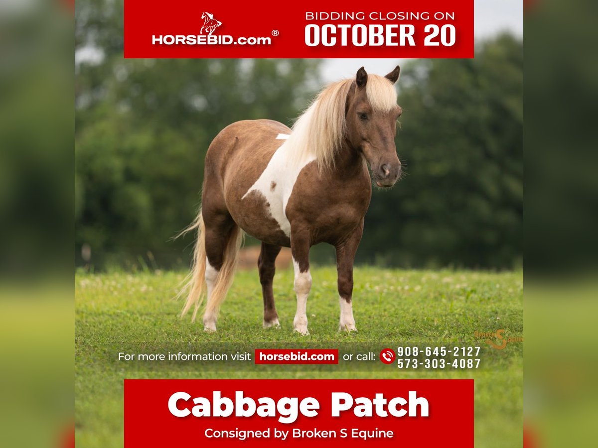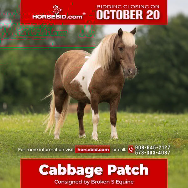 ♦️ 𝐭𝐡𝐞 𝐀𝐌𝐄𝐑𝐈𝐂𝐀𝐍 𝓕𝓪𝓵𝓵 𝓒𝓵𝓪𝓼𝓼𝓲𝓬 ♦️ Happening now thru MONDAY | OCTOBER 20th - Available EXCLUSIVELY on HorseBid's website! For more details and to register visit: www.Horsebid.com CONSIGNOR CONTACT: Broken S Equine Kieran 908-645-2127 or Beau 573-303-4087 LOCATION: Bogard, MO BREED: Shetland REGISTERED: No COLOR: Paint HEIGHT: 10 AGE: 12 GENDER: Gelding Cabbage Patch is a 12 year old Shetland gelding standing 10 hands high. If you want to get your kids off the iPad and into the fresh air, this one’s for you. Cabbage is the ATV of ponies. The kids hop on and ride off through the woods for hours and hours, going up and down hills, through water, over bridges, and through cow pasture. He always gets his riders home safe in one piece, with a big smile on their faces. When the kids take him for a ride, we never worry about a thing. He’s been there done that, and knows his job is to keep the kids happy and safe - both under saddle and in harness. Whatever you do with Cabbage Patch, he will do it well and he’ll do it happily. He is the kind of pony that loves having kids to look after, and always appreciates the attention he gets while he’s doing it. On any given day, you’ll find Cabbage trotting around the field with the boys playing cowboy. They shoot their pop guns off him, attempt to rope the goats, and sometimes each other! They jump on double from behind pretending to catch train robbers, do victory laps around the fields, and try to sneak him into the house to play Godzilla and smash their siblings Lincoln log towns. Now, Cabbage isn’t just for cowboys, the cowgirls also enjoy putting a unicorn on and dressing up as Elsa, braiding his hair and putting glitter all over him. He is oh so kind, patient, and saintly for all of the fun the kids have with him. Cabbage Patch is a gentleman in the barn, and an easy keeper to have around. He lives out in a mixed herd and has no vices or maintenance. Whether you want to drive, have a forgiving and confidence building first pony for the kids, or just have a fun little pony around for when the grandkids come to visit, Cabbage is always happy to do the job!