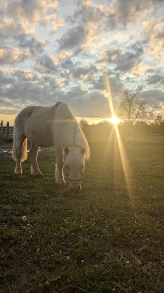 Aufgrund finanzieller Schwierigkeiten muss ich mich leider sehr unverhofft von meinem Shetty Miro trennen. Zunächst ein paar Details: Miro ist 22 Jahre alt, mit seinen 116cm Stockmaß für seine Rasse sehr groß und mit 162 kg keineswegs zu dick. Gesundheitlich gab es bei ihm in den 13 Jahren, die ich ihn habe, noch nie ein Problem. Er läuft problemlos barhuf und hatte orthopädisch noch nie Probleme. Er ist natürlich geimpft und entwurmt, auch die Zähne sind gemacht, was bei ihm ohne Sedierung funktioniert. Auch sein Fellwechsel funktioniert wunderbar. Während er im Sommer ein etwas dunkleres, kurzes Fell hat, wird er im Winter heller und plüschig. Weder Decke noch Rasur waren je nötig. Im Umgang ist er brav und selbstverständlich Schmiede- und Verladefromm. Zudem ist er sehr verschmust und liebt es, geputzt zu werden. Rassetypisch ist er nicht für blutige Anfänger geeignet, aber bereits mit ein wenig Erfahrung können auch Kinder alles mit ihm machen. Anderen Pferden gegenüber ist er relativ introvertiert, kann dementsprechend aber auch mit jedem Pferd oder Pony zusammen gestellt werden und beknabbert sich auch gern einmal, wenn die anderen auf ihn zukommen. Er ist gut bemuskelt und arbeitet im Training gut mit. Sowohl Spazieren bzw. Walking, auch über weitere Wege, als auch Freiarbeit im Roundpen (Trab/Galopp/Übergänge und auch Freispringen) geht wunderbar, auch mit zwei Ponys gleichzeitig. Beim Freispringen zeigt er sehr viel Potential und auch sein Trab ist großartig, weshalb ich ihn mir auch gut vor dem Sulky vorstellen könnte. Unter dem Reiter ist er allein recht unsicher, geführt macht er aber alles perfekt. Wie man in der Beschreibung sicherlich merkt, handelt es sich hier um ein tolles Pony und geliebtes Familienmitglied, dass ich nur ungern hergebe. Deshalb gilt natürlich Platz vor Preis - mir ist einfach wichtig, dass ich etwas gutes Neues für ihn finde. Am liebsten würde ich ihn mit seinem Kumpel Jack vermitteln. Die beiden stehen seit 13 Jahren zusammen und verstehen sich perfekt. Sein Inserat findet sich ebenfalls hier auf E-Horses und kann über mein Profil gefunden werden. Für Fragen oder weitere Infos und Bilder bzw. Videos stehe ich jederzeit unter meiner E-Mail (finnegan@alkemper-online.de) zur Verfügung. Zubehör aller Art kann ebenfalls zu einem günstigen Preis übernommen werden.