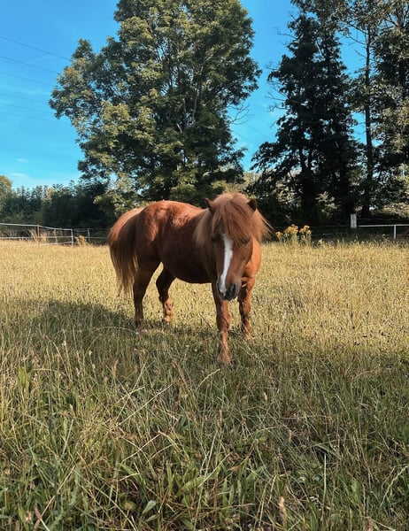 Lieber Shetlandpony Wallach inkl. Sulky & Kutschgeschirr + weiteres Zubehör zu verkaufen Zum Verkauf steht ein 22-jähriger Shetlandpony Wallach, der sich als absolut zuverlässig und lieb im Umgang zeigt. Mit ihm kann man einfach alles machen - er ist nicht schreckhaft, ruhig und sehr brav. Jimmy ist geritten, eingefahren und eignet sich hervorragend für Kinder sowie für Anfänger. Im Alltag ist er unkompliziert, freundlich und menschenbezogen. Ein voll funktionsfähiger Sulky sowie das passende Kutschgeschirr, viele Halfter + Stricke, 3 Trensen, 1 Sattel + Satteldecke sind im Preis enthalten. Der Sulky ist auf den Bildern zu sehen. Nur in gute und liebevolle Hände abzugeben. Bei Interesse gerne melden!