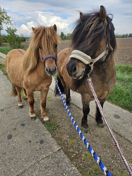 XXL Shetty Mann hält nach neuem Wirkungskreis Ausschau. (Er ist wieder zu haben) 2,5 jähriger Fuchsfalbwallach von Kölnäs Wiktor aus einer StPSt von Chris van't Zand x Ambitie v.d Zandkamp im ganzen großen Maß (aktuell gemessen mit 111cm Endmass ca 115cm) , superlieb im Umgang, auch anderen Ponys gegenüber. Noch etwas schüchtern Fremden gegenüber, aber wenn man einmal sein Herz erobert hat weicht er einem nicht mehr von der Seite. Er kennt anbinden, putzen, Spaziergänge, Anhänger fahren, gibt brav alle 4 Hufe, Hunde und Trecker sind auch nichts unbekanntes für ihn, liebt es betüddelt zu werden. Er ist in einer kleinen gemischten Herde aufgewachsen und eher rangniedrig. Ich würde mir am Liebsten eine "für-immer-Bleibe" für ihn als Fahrpony wünschen, aber sicherlich würde er auch ein tolles Kinderpony werden oder einer der Spass an Bodenarbeit hätte. Eigentlich ist er für jeden Blödsinn zu haben ;-) Ich hätte auch noch einen Passer (s.letztes Foto bzw meine andere Anzeige)zu ihm abzugeben.