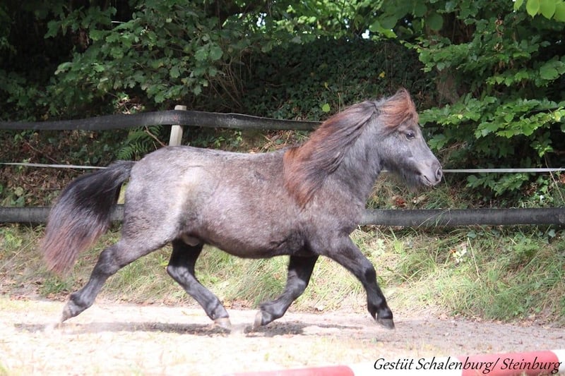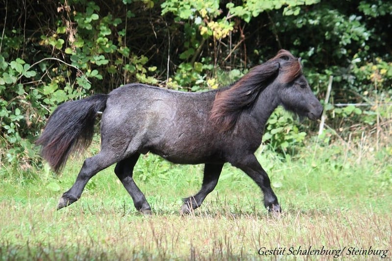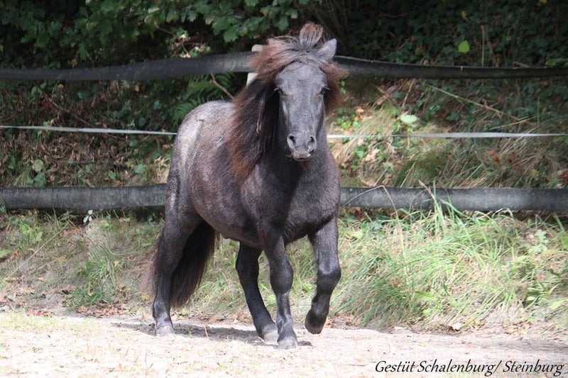 Steinburgs Nepomuk is een vriendelijke en open jonge ruin. Hij is geboren in augustus 2024 en zal een eindmaat bereiken van ongeveer 95-100 cm. Hij kent alles wat een pony van deze leeftijd zou moeten kennen. Daarbij is hij een absolute voorbeeldleerling. Hij laat zich probleemloos laden, vastzetten en het hooi geven vormt geen enkel probleem. Nepomuk leeft momenteel in een grote hengstenhengstengroep, waarin hij gewoon pony mag zijn. In augustus was hij een week thuis op de stal (in verband met castratie), wat hij ook probleemloos heeft doorstaan. Hij is goed geïntegreerd in de groep en beschikt over een goed sociaal gedrag. Nepomuk is aanvankelijk wat terughoudend, maar komt daarna los en staat graag open voor contact met mensen. Beide ouders hebben een geweldig karakter en tonen zich zeer bereid tot prestaties (wagen, dressuur). Dit zien we ook al bij de kleintjes. Hij heeft een eerlijk karakter en zal zeker interessant worden voor gezamenlijke arbeid. Hij kan graag persoonlijk worden ontmoet (net als zijn ouders en broers/zussen). Op verzoek kan hij, tegen vergoeding, nog bij ons blijven voor de opfok. Natuurlijk worden zijn hoeven regelmatig geschoren en wordt hij regelmatig ontwormd. Verkoop alleen als hij ook in de toekomst een passend speelkameraadje heeft. Alle verdere informatie graag op aanvraag.