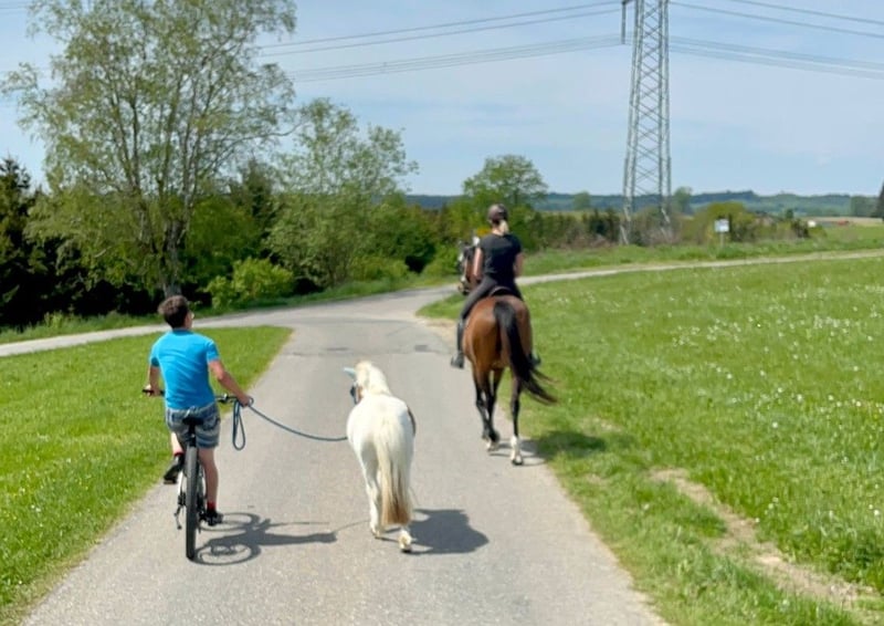 Alfonso ist ein Shetlandpony, wie man es sich nur wünschen kann. Unerschrocken und für jeden Spaß zu haben, begeistert er mit seinem ausgeglichenen Wesen und seiner motivierten Arbeitseinstellung. Er lebt 24/7 in einem Offenstall. Dort lebt er in einer gemischten Herde und verträgt sich sowohl mit Wallachen als auch mit Stuten. Regelmäßigen Weidegang ist er gewöhnt, benötigt ihn aber nicht zwingend. Im Umgang ist Alfonso absolut unkompliziert – Auch von Kindern lässt er sich gerne putzen, führen und reiten. Er macht deren Späße mit viel Begeisterung mit. Alfonso ist zuverlässig im Gelände. Geritten sowie als Handpferd. Auch in der Bodenarbeit ist er fein, aufmerksam und motiviert. Dabei benötigt er eine konsequente, aber faire und feine Hand. Im Rahmen seines Alters ist Alfonso vielseitig ausgebildet: Fahren vom Boden im Gelände, Doppellongenarbeit, Bodenarbeit, Handpferdetraining sowie gemeinsame Fahrradtouren gehören zu seinem Alltag. Außerdem ist er regelmäßiges Hänger fahren gewöhnt und meistert dies auch gut alleine. Aufgrund seines Ehrgeizes und Unerschrockenheit im Gelände kann er mit entsprechender Ausbildung sicherlich auch im Fahrsport ein erfolgreicher Partner werden. Ich suche für Alfonso ein Umfeld, welches Freude daran hat, Zeit mit ihm zu verbringen und seine Begeisterung für neue Aufgaben weiterhin fordert und fördert. Regelmäßige Check-ups, Zahnbehandlungen, Hufpflege sowie Entwurmungen und Impfungen wurden selbstverständlich regelmäßig durchgeführt. Sein Zubehör kann sehr gerne miterworben werden.