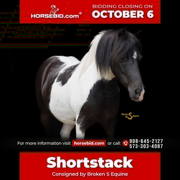 🍂 𝓐𝓾𝓽𝓾𝓶𝓷 𝑨𝑳𝑳 𝑺𝑻𝑨𝑹 𝑳𝑰𝑵𝑬𝑼𝑷 🍂 Happening now thru MONDAY | OCTOBER 6th - Available EXCLUSIVELY on HorseBid's website! For more details and to register visit: www.Horsebid.com CONSIGNOR CONTACT: Broken S Equine Kieran 908-645-2127 or Beau 573-303-4087 LOCATION: Bogard, MO BREED: Shetland REGISTERED: No COLOR: Black and White HEIGHT: 38 inches AGE: 5 GENDER: Gelding Shortstack is a 5 year old Shetland gelding standing 38 inches tall. This is a mini ranch pony deluxe! He has all the brains of a big horse in a little tiny body. He rides out on the ranch, lets the kids ride around the cows on him, and keeps his little riders safe. Our kids have taken him to the park, ridden into town, and double out to get ice cream after a long days work. Hit h him up and drive him anywhere! Shortstack is as wide as he is tall, making him a sturdy choice for any little cowboy or cowgirl. Shortstack will ride in the arena and out, and is great on the lead line. He is a trail master, crossing water, logs, and busy roads with ease. He is sure footed and brave! Shortstack will also do trail obstacle courses, has come along on hunter paces, and is a great little traveler! In the barn, Shortstack stands tied patiently and has great ground manners. He enjoys attention, being bathed, groomed, and braided. He’s used to loud farm machinery, dogs, and of course all of the crazy kids running about! He lives outside in a mixed herd and is the easiest of keepers. ⚫️Shortstack is an easy keeper that requires no maintenance. We have a recent, clean vet check on file. ⚫️Our program aims to train and produce top quality horses and ponies for all disciplines and experience levels. Check out our website for testimonials! ⚫️We are located in Bogard, MO. We can help you arrange shipping anywhere! ⚫️For more information about Shortstack, or any of our other horses call or text us. Kieran 908-645-2127 Beau 573-303-4087