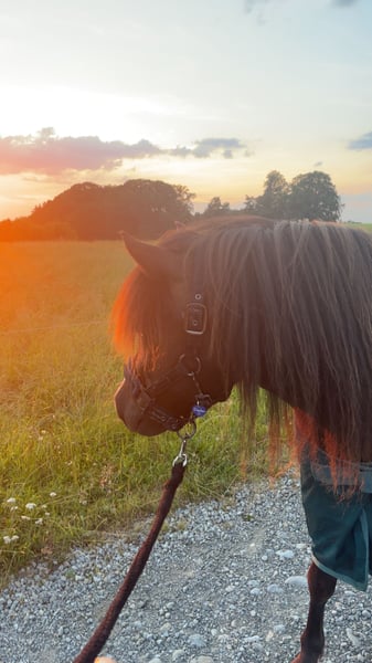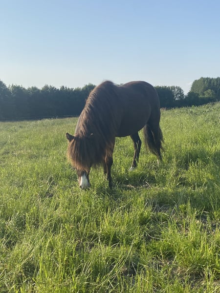 With a heavy heart, I have to part with my 7-year-old Shetland pony gelding, Mephisto. Menny is approximately 1.17 meters (about 12.1 hh) tall and very gentle in handling. He is traffic-safe and especially fearless in the field. Since he is still quite young, he is not a pure children's pony and naturally has a few mischievous ideas, requiring a firm but fair hand. However, he is always easy to handle. He has a deformity in his left hind leg and a slight overreach, but neither of these issues restricts him in any way. Otherwise, he is in excellent health. He has never been ridden or driven so far. He loves long walks, can be lunged, and enjoys groundwork very much. Currently, he is kept in an open stable in a large mixed herd, with 12-24 hours of turnout depending on the season, which he enjoys very much. Therefore, I am only looking for a new home where he can continue to be kept in an open stable or similar environment. All accessories such as halters, lead ropes, lunge line, and grooming supplies can be taken along if desired.