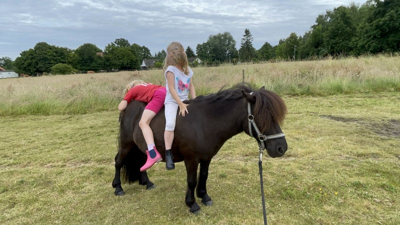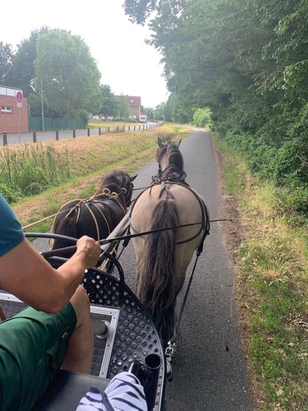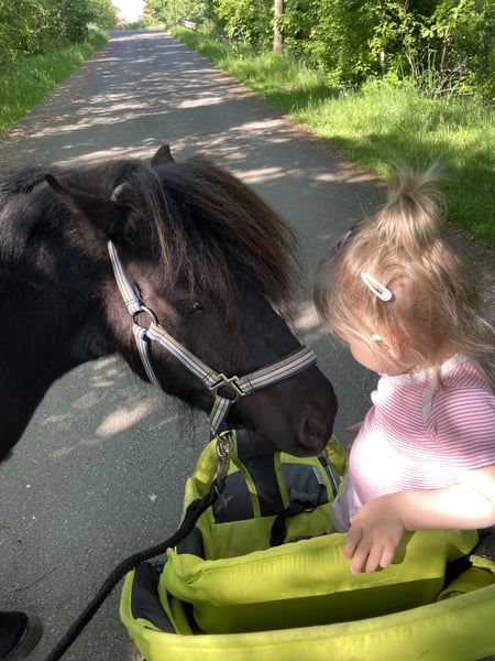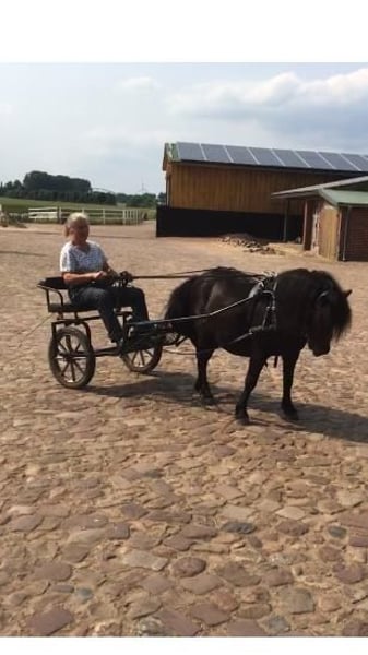 Wir verkaufen schweren Herzens unseren Murmel. Wir haben ihn im Sommer 2022 direkt vom Züchter gekauft. Er lebt bei uns im Offenstall mit drei weiteren kleinen Ponys. Wenn es ums Futter geht ist er hier der Erste. Er ist dabei aber nicht aggressiv und teilt auch. Er spielt sehr gerne und braucht um glücklich und ausgelassen leben zu können auch in Zukunft jemanden zum Spielen. Er wurde bis vor drei Jahren auch regelmäßig ein- und zweispännig gefahren. Murmel ist den Umgang mit Kindern gewöhnt und dabei sehr lieb. Auch ein Laufstall mit Baby am Stall ist ihm nicht fremd. Er kennt Reitunterricht mit und ohne Longe. Die Kinder springen mit ihm auch. Er kennt Spaziergänge mit Kinderwagen und Hund über die Autobahnbrücke und am Flughafen und hat keine Probleme mit Begegnungen mit Hunden oder Kühen. Er macht auf dem Reitplatz alles mit wie Reiter mit Regenschirm, Gymnastikbälle schießen, über Folien laufen und lässt sich auch "verkleiden". Beim Reiten und im Umgang hat er trotzdem seinen eigenen Kopf - er ist eben ein echtes Shetty. Man muss sich schon durchsetzen können bzw. die Kinder begleiten. Er ist neugierig und kommt auch gerne kuscheln. Außerdem hat er Erfahrung im natural horsemanship, in der Handarbeit und auch mit der Doppellonge. Gegen einen Aufpreis kann auch sein Zubehör dazu erworben werden (Schrank, Sattel, Trense, Abschwitzdecke, Kapzaum...) Bei Interesse und für weitere Informationen freuen wir uns auf Ihre Kontaktaufnahme. Für eine Kennlernstunde mit Probereiten nehmen wir 30€ die natürlich beim Kauf verrechnet werden.