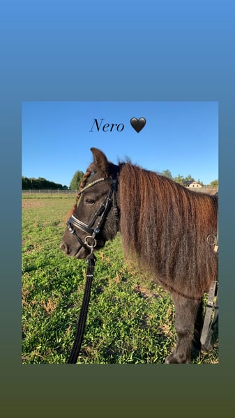 Nero ist ein ca. 8 jähriger Shettywallach mit schönen langen Beinen und hat mit seinen 1,15m eine tolle Größe. Er ist gefahren, läuft sicher mit Kindern an der Longe alle Gangarten und kann vom Boden aus sicher von Kindern gehandhabt werden. Doppellonge, Bodenarbeit und ausreiten sind in der Gruppe als auch alleine kein Problem. Nach bestem Wissen und Gewissen ist er gesund. Aufgrund von Reittourismus veranschlage ich 20€ für ein Treffen , die beim Kaufpreis verrechnet werden.