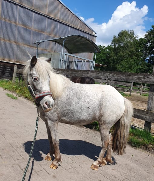 Sehr liebe und menschenbezogene Partbred - Shettystute mit vollem Papier in beste und gerne fördernde Hande abzugeben. Bonnie macht alles gerne mit: Bodenarbeit, geführtes Reiten, Spazieren gehen im Gelände, und ist dabei stets brav und vertrauensvoll. Sie hatte bereits ein Fohlen. Sie ist sehr lieb auch mit Kindern, beim Putzen und von Kindern geführt völlig unkompliziert. Wir geben sie ab, wenn alles passt, weil sie bei uns nicht genug Aufgaben hat, sich aber über jede Aufmerksamkeit freut. Sie ist natürlich schmiede- und verladefromm und absolut verträglich mit kleinen und großen Pferden. Für die Zucht geeignet - sie hat volles Papier und hatte bereits ein Fohlen. Als BEisteller auch für große Pferde geeignet, keine Rehe, kein Ekzem.