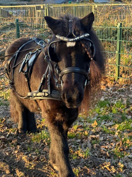 **Verkaufsanzeige: Charmante Shetland Pony Stute** Zum Verkauf steht eine tolle große Shetland Pony Stute, geboren2014. Sie ist ein Rappe mit einem Stockmaß von ca 115 cm und eignet sich sowohl als Reitpony oder als zukünftiges Fahrpony. Sehr raumgreifende Bewegungen. Sie ist in allen 3 Gangarten geritten, an der Longe und frei, sicher muss die Ausbildung noch gefestigt werden da erst 10 Monate geritten, vorher nur vom Boden gearbeitet. Im Gelände alleine oder als Handpferd mit und ohne Reiter absolut cool und unerschrocken. Geht super an der Doppellonge, bereits vom Boden gefahren, zieht Reifen/Schleppe absolut cool und sicher. Läuft auch super am Fahrrad Eigentlich in allem ein Traumpony Leider hat sie ein leichtes Ekzem entwickelt das sich aber mit wenig Aufwand in den Griff bekommen lässt. Sie wird nur abgegeben weil wir kein passendes Reitkind haben und sie zum rumstehen einfach viel zu schade ist, sie möchte unbedingt arbeiten Diese liebevolle Stute ist bestens geeignet für Kinder und Anfänger, die ein zuverlässiges und freundliches Pony suchen. Sie ist gut im Umgang, brav beim Führen und verladen, liebt es, Zeit mit Menschen zu verbringen. Ob beim Ausritt oder in der Halle/Platz sie bringt viel Freude und Spaß. Händler zwecklos Nur in Ponygesellschaft