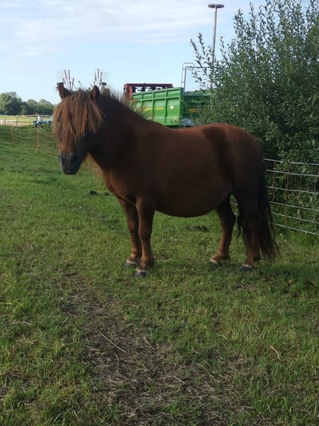 Stute Fuchs Geb 2014 100% Zaun sicher Entwurmt Kroonstute Sie hat sehr schöne schwungvolle Gänge und ist sehr kompakt gebaut. Sie ist absolut Straßen sicher, geht gerne im Gelände und Watt spazieren. Im Umgang mit Menschen ist sie vorsichtig, und braucht eine Weile um sich einzugewöhnen. Sie besitzt volle Papiere und wurde 2019 zur Kroonstute. Bei uns läuft sie mit 4 weiteren Shettys auf der Weide und hat damit keine Probleme. Sie ist definitiv KEIN Kinderpony. Nur in nachweislich gute Hände abzugeben.