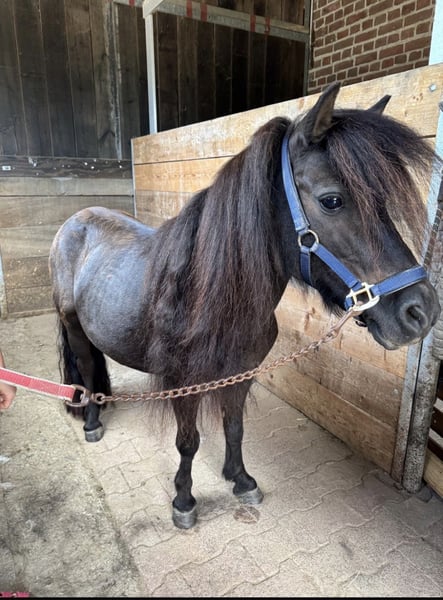 Penny (Penelope Cruz van Jeestebeck) , geboren 2015, bereitet vielen Kindern immer wieder Freude. Jedoch ist keines der Kinder dabei dass dauerhaft Interesse hat Penny zu tüddeln und zu reiten. Pennys Freunde (Wallach+Stute) sind vor einem Jahr ausgezogen sodass sie nun immer alleine auf der Wiese und nur neben den anderen Pferden steht. Da ich mir für sie wieder ein erfüllenderes Leben mit anderen Ponys oder Beistellpferden vorstellen würde, würde ich sie gerne anbieten um evtl auch wieder ein Kind zu finden das Freude an ihr hat. Penny ist ca 96cm Stockmaß, im Sommer Rappe im Winter heller, Verbandsprämienstute. Bei den Vorbesitzern hat sie ein Prämienfohlen zur Welt gebracht. Platz vor Preis! Westernsattel, Trense und Fahrgeschirr sind dabei Abstammung : PRH Rhenania Paganini x PRH Champlers Rosestar
