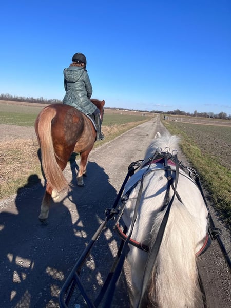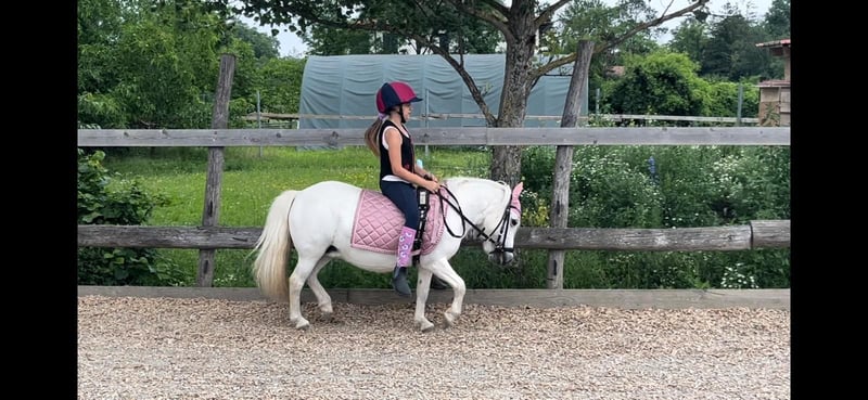 Zum Verkauf steht unsere liebevolle, 13-jährige Schimmel Shetland-Pony-Stute – ein echtes Allround-Talent für Kinder, Familien und ambitionierte junge und kleine Reiter. Sie wurde von unserer Tochter selbstständig ausgebildet und überzeugt mit einem freundlichen Charakter. Stockmaß ca. 1m. Barhuf Was unsere Stute besonders macht: • Vielseitig ausgebildet: Bereits auf Turnieren wie der Führzügel-Klasse oder first ridden vorgestellt, Reiterpass absolviert, Nadelprüfung vorbereitet. • geritten und gefahren. • Kinder- und familienfreundlich: Offenstall- und Herdenhaltung gewohnt, verträglich, unkompliziert im Umgang. • Geländesicher: Ausritte in der Gruppe • Schmiede- und Verladefromm, Beladen durch unsere Tochter. • Straßensicher: Kennt Traktor, Autos, etc. • Kennt Schulstunden an der Longe aber auch in der Abteilung Sie ist ein absplut verschmuster und menschenbezogener Goldschatz. Inklusive umfangreichem Zubehör: • Sattel, zwei Zaumzeuge, Gebisse • Schabracken, Abschwitz- und Regendecke, Fliegenhauben, Beinschutz • Fahrgeschirr inkl. Fahrkantare, Longiergurt mit Haltegriff • Alle Halfter Aktuell steht sie nachts in der Box und tagsüber in einer kleinen Ponyherde auf der Koppel. Sie wird nur an einen Bestplatz abgegeben – ein liebevolles Zuhause ist uns wichtig. Bei uns ist sie ein Familienmitglied und wir würden uns für sie eine Familie wünschen. Sie wird nur abgegeben, weil unsere Tochter aus ihr hinausgewachsen ist und wir finden, dass sie zum herumstehen zu schade ist. Ein Video kann bei ernsthaftem Interesse zugesendet werden. Dies ist kein Notverkauf – unsere Stute soll in gute Hände kommen, die ihre Talente und ihren Charakter zu schätzen wissen. Gerne helfen wir beim Transport. Bei Interesse gerne per Mail.
