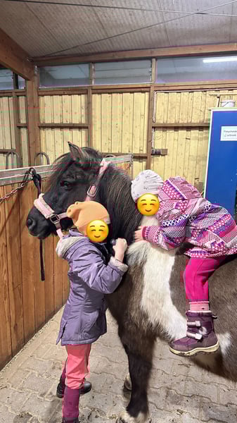 Schweren Herzens müssen wir uns von unserer Mika trennen. Sie ist seit fast sieben Jahren Teil unseres Schulbetriebs gewesen und hat zuverlässig vielen Kindern den Einstieg in den Reitsport ermöglicht. Sie kennt Gruppenausritte, Langzügel, kleinere Zirkustricks und war auf dem Turnier in Führzügel und Reiterwettbewerb stets eine verlässliche Partnerin für unsere kleinen Reitschüler. Aufgrund eines Befunds ist sie leider nicht mehr einsetzbar in unseren täglichen Reitstunden und wir wünschen uns für Mika einen tollen Endplatz, wo sie geliebt und betüddelt wird und hoffentlich noch weitere Kinder glücklich machen kann. Sie ist von leichten Kindern bedingt reitbar, aktuell lahmfrei. Kontaktaufnahme und weitere Infos gerne per WhatsApp 01525 1371161.