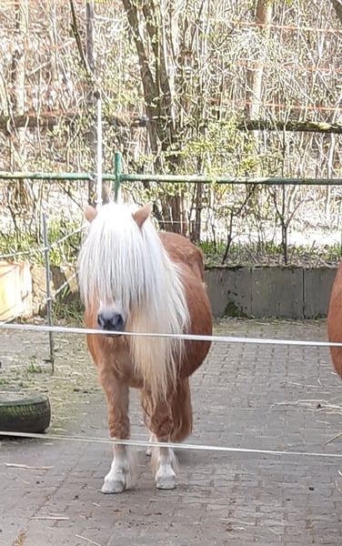 Wir geben unsere Crista (liebevoll Blondi gerufen) nur in gute Hände ab da sie, seitdem wir mit der Zucht aufgehört haben, etwas unterfordert ist. Sie läßt sich sehr gerne putzen und tüddeln, sie tritt und beißt NICHT, sie ist in der Herde ranghoch (bei genügend Platz ist das kein Problem, nur wenn es zu eng wird jagt sie die anderen weg), hat keine Rehe und kein Ekzem. sie hatte bei uns 3 Fohlen (2 Hengstfohlen und 1 Stutfohlen) vererbt groß, alle Nachkommen haben ihre weiße lange Mähne, Stutfohlen mit 8,0 beim Vdp Hessen bewertet, Hengstfohlen war Verbandsprämiensieger, gerne geben wir sie als Beisteller ab da sie wirklich lange Zeit nicht geritten wurde und eigentlich auch genügend Fohlen geboren hat (beim Vorbesitzer 2 bei uns 3). Wir suchen einen Endplatz wo sie es shettygerecht gut hat. Sie sucht gerne nachts eine Box zur Ruhe und tagsüber eine Herde. Gerne kann sie persönlich angeschaut werden.