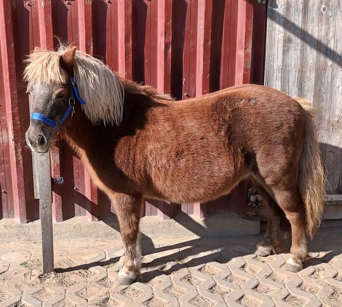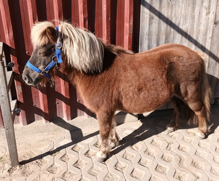 Liebe kleine Shetty Stute im Mai 2006 gebohren, sucht kleine Herde zum Toben. Sie ist nur etwa 88cm (mir kommt sie viel kleiner vor). Sie war in ihrem früheren Leben nur Zuchtstute und wird deshalb nur als Beisteller zum betüddeln abgegeben. Falls ein wirkliches Interesse besteht sich ein kleines Shetty zuzulegen Bitte meldet euch. Leider sind hier bei zwei ranghohe Ponys und nur ein rangniedriges einer zu viel. Sie steht bei Wind und Wetter draußen, sollte aber trotzdem ein Wetterschutz zur Verfügung haben. Sie ist für 7 Tage 24 Stunden Heu Fütterung geeignet. Leider die zwei anderen Ponys nicht, die würden irgendwann wie ein Ballon platzen. Alles weitere bei Interesse. Bitte nicht nur merken, sondern gleich mal nachfragen was ihr euch vorstellt.