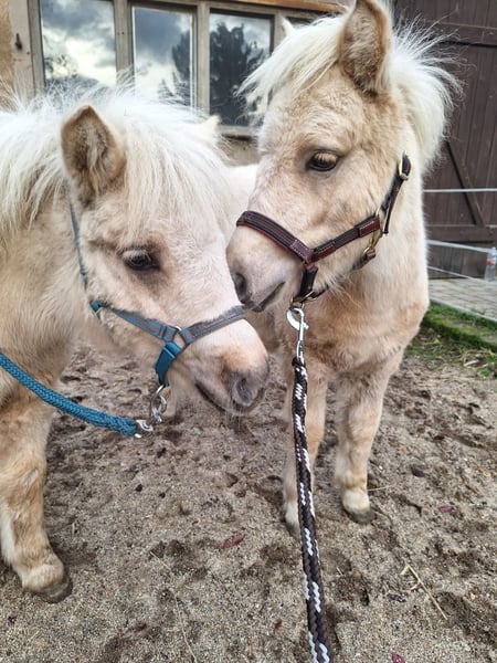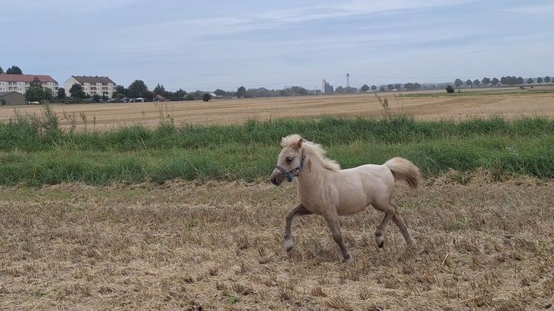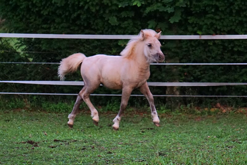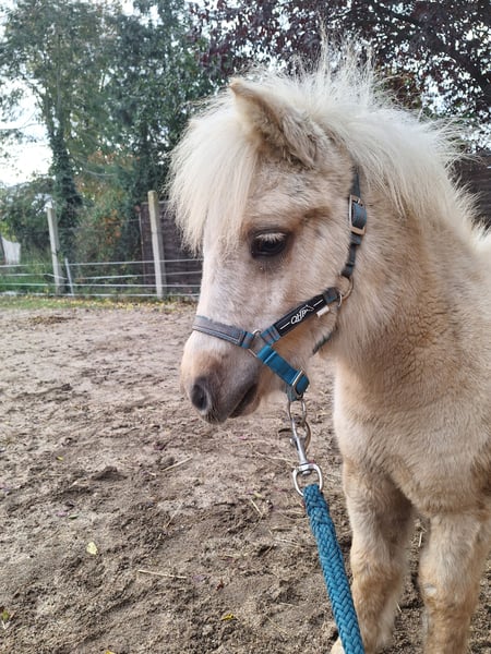 Breed: Original Shetland Pony Gender: Filly Age: 5 months Color: Palomino Height at maturity: approximately 39-41 inches (1.00–1.05 m) Pedigree: With full papers We are offering a particularly typy Shetland Pony filly in a stunning Palomino color. She is raised naturally in a herd and displays a fearless, balanced, and friendly temperament. Ideally, she would stay with her half-sister (see other listing). Both are likely to make a wonderful driving pair in the future. Only placed in the very best home. ✅ Training/Handling: - Has only been in a herd environment - Halter-trained - Gently gives her hooves - Curious and friendly ✅ Especially suitable for: - Driving ✔ - Breeding ✔ - Children/leisure riding ✔ - Future riding or lead rein pony work The foal is healthy, correctly conformed, and shows very good movement. Regularly dewormed, with hoof care provided.