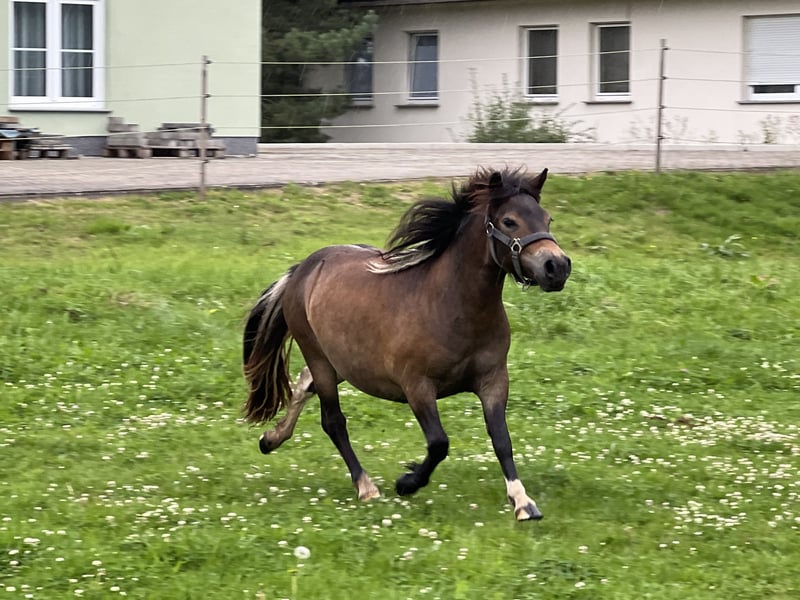 We are selling our yearling filly "Janikos El Katharina," who was born on April 21, 2024, on our farm and presents herself in the color brown pinto. She currently has a height of 96 cm and is expected to reach a final height of around 103 cm, although due to her strong build, a final height of around 105 cm is also possible. As a foal, she was awarded the Vice Champion ribbon at the Elite Foal Championship in Redefin among the German Part-bred Shetland Pony fillies. She received an overall score of 9.1: - Type 9.5-9.5-9.5 - Exterior 9-9-9 - Movement 9-8.5-9 Katharina performed well below her potential on that day, as she injured herself while loading onto the trailer. She is familiar with everything a yearling filly needs to know: haltering, leading, trailer loading, electric fencing, etc. The farrier comes every 6-8 weeks, she has been freshly dewormed, and she is vaccinated against influenza and tetanus. This means that there are no misalignments due to "wild" upbringing; additionally, our ponies receive daily mineral feed adjusted through blood tests. She is raised in herd conditions with another young filly in pasture, but starting in autumn/winter, she will spend the nights in a run-in shed or box. She was just at the farrier on July 16. Janikos El Katharina DPbShP 96 cm *April 21, 2024 Brown Pinto 1b Elite Foal M: S1 Viktoria Janica (Image 5) DPbShP Black Pinto 105 cm MV: LH Varus MMV: EH Karon I V: B.Pr/V.Pr /LH Esteban van de Zandkamp (Image 6) Original Shetland Pony Brown Dun 104 cm VV: Pybe van Stal de Toekomst VMV: Itt van de Zandkamp