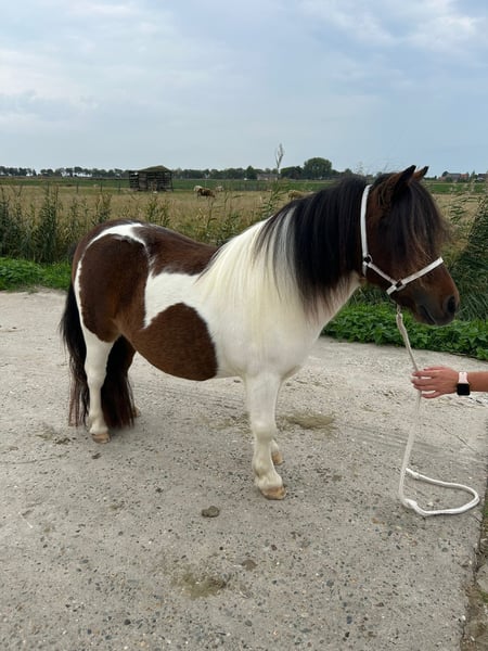 shakira v. Polderka is bij ons geboren op 25 april 2023, het is een lieve mooie bruin bonte Shetlander merrie die dagelijks in de hand komt, ze is bekend met poetsen, wandelen, hoefsmid en kinderen om haar heen. Stamboekpapieren aanwezig. Op dit moment is haar hoogte 85cm. Kan binnen en buiten staan en in een kudde is ze ook makkelijk.