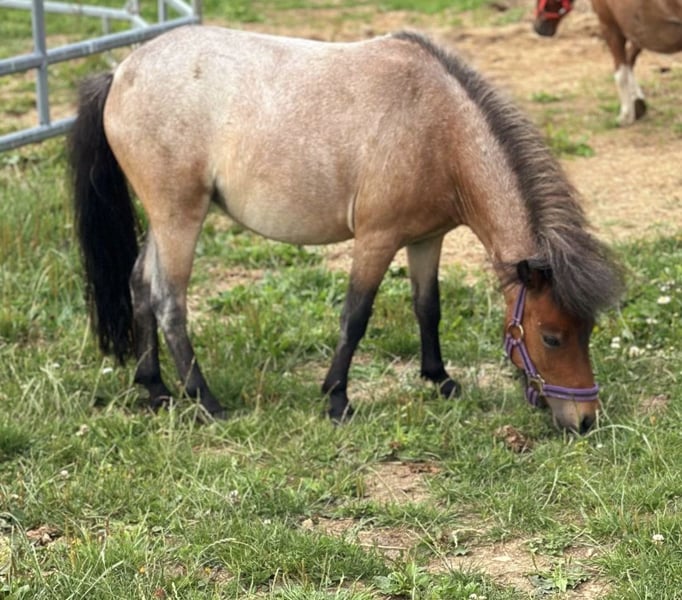 Farbwechsler Stute – Jung, hübsch & menschenbezogen ✨ Alter: 2 Jahre Stockmaß: ca. 90 cm Diese kleine Stute ist ein echter Hingucker! Mit ihrer besonderen Farbentwicklung (Farbwechsler) und ihrem ruhigen, ausgeglichenen Wesen bringt sie alles mit, um ein treuer Begleiter zu werden. ✅ brav beim Putzen ✅ läuft zuverlässig am Strick ✅ kennt Planen & kleine Hindernisse ✅ bestens an Menschen gewöhnt Sie überzeugt durch ihre Sanftheit und Gelassenheit und wird mit der Zeit eine ganz besondere Fellfarbe entwickeln – ein echtes Schmuckstück für Ponyliebhaber! Für das Putzen, Spazierengehen, Knuddeln und Kennenlernen berechnen wir 15 €, um den Reittourismus nicht zu unterstützen – zum Wohle des Pferdes. Beim Kauf am selben Tag wird der Betrag verrechnet.