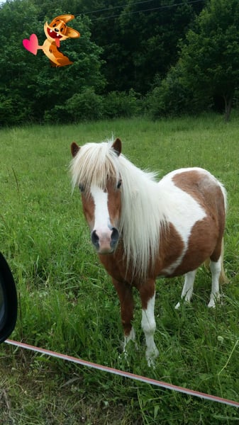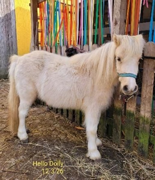 Hello-Dolly unser 3jähriges Shetty-Stute in Palomino-Schecke, sucht jetzt einen guten neuen Lebensplatz. Seine Mutter ist eine wunderschöne Shettlandstute mit 95 cm und der Vater ist ein Mini-Shetty-Hengst mit 81 cm. Dieser ist ebenfalls ein sehr ruhiger, folgsamer, menschbezogener Hengst und gekört. Beide Elterntiere sind bei uns anzusehen. Hello-Dolly ist in der Herde aufgewachsen. Sie ist ein sehr menschenbezogene, sehr liebe Stute ohne igendwelche Macken. Sie gibt brav die Hüfchen, lässt sich führen, sucht den Kontakt zum Menschen und hört auch auf ihren Namen. Er fährt problemlos Hänger, kennt Hunde und Ziegen. Er trägt die tolle Farbe Palomino-Schecke. Er hat einen Equidenpass und ein halbes Papier. Weitere Infos per Tel 0160/90153955