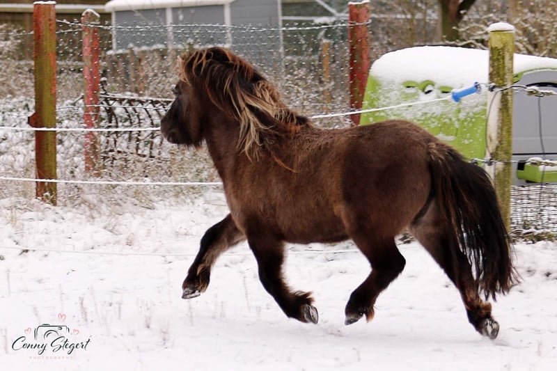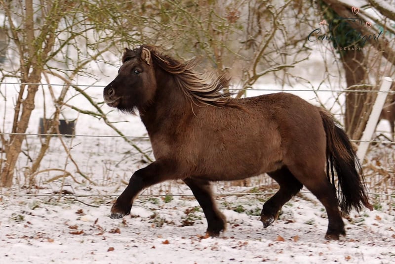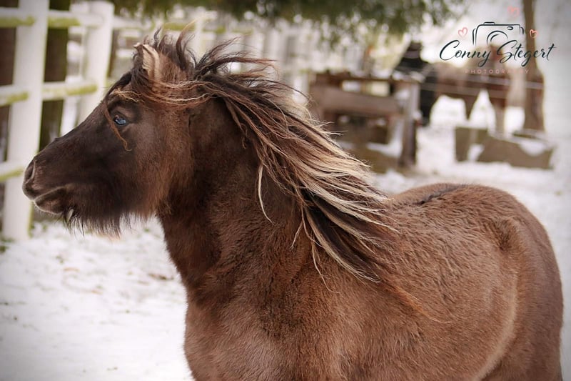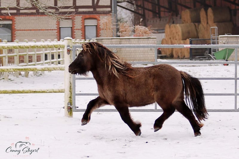 Trappelfööts Smiling Hope ("Smilie") is a charming, age-appropriate trained German Partbred Shetland Pony mare. She is eager to learn and very people-oriented. Her outstanding, elastic trot with lots of "bounce" is particularly noteworthy.