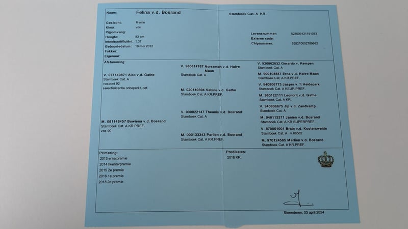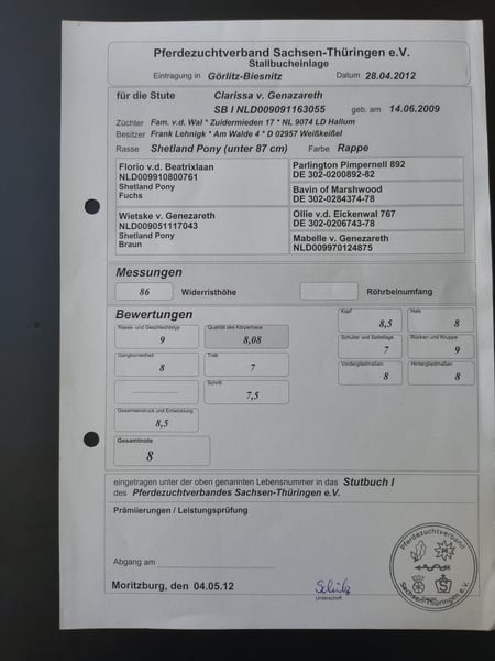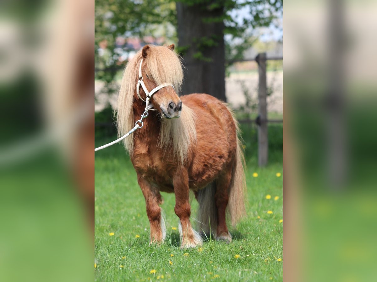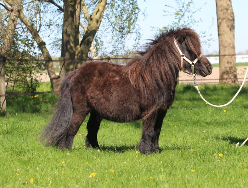 Felina v.d Bosrand (Fotos 1 bis 6) ist eine wunderschöne, 14-jährige, kastanienbraune Shetland-Stute mit hellem Schweif und heller Mähne. Sie ist 83 cm groß und stammt aus einer Kronpferdezucht. Sie hat eine exzellente Abstammung und wurde im renommierten Gestüt Bosrand der Familie Klaassens gezüchtet. Felina ist eine sehr liebe und unkomplizierte Stute, die sich auch hervorragend für Kinder eignet. Zudem verträgt sie sich sehr gut mit anderen Ponys. Sie hat bereits Fohlen gehabt und ist derzeit tragend. Das Fohlen wird im Juli 2026 erwartet. Sie ist korrekt gebaut und fehlerfrei. Der Preis für Felina beträgt 775 Euro. Clarissa van Genazareth (Fotos 7 bis 12) ist eine wunderschöne, 17-jährige, schwarze Shetland-Stute mit einem Stockmaß von 86 cm. Sie wurde in den Niederlanden gezüchtet und nahm an der Körung in Deutschland teil, wo sie eine Staatsprämie mit sehr guten Noten erhielt. Sie hat eine sehr gute Abstammung und hat bereits mehrere Fohlen, darunter auch Schecken, zur Welt gebracht. Clarissa ist eine sehr temperamentvolle, liebe und unkomplizierte Stute, die sich auch sehr gut mit Kindern versteht. Zudem ist sie sehr verträglich mit anderen Ponys. Sie ist derzeit tragend und erwartet ihr Fohlen im Juli 2026. Sie ist korrekt gebaut und fehlerfrei. Der Preis für Clarissa beträgt 675 Euro. Marloes v.d. Stationshoeve (Fotos 13 bis 19) ist eine wunderschöne, 8-jährige Shetland-Stute in Goldfuchsfarbe mit einem Stockmaß von 88 cm. Sie erhielt als Zweijährige eine Prämie und wurde seitdem nicht mehr gekört. Marloes ist eine sehr liebe und unkomplizierte Stute, die anfangs etwas zurückhaltend ist. Sie ist sehr verträglich mit anderen Ponys. Marloes hat bereits Fohlen gehabt und ist aktuell tragend. Die Geburt ist für Juli 2026 geplant. Sie ist korrekt gebaut und fehlerfrei. Der Preis für Marloes beträgt 725 Euro. Die Stuten sind von dem gescheckten Mini-Hengst Laurier van Berja (letztes Foto) trächtig. Er ist 80 cm groß und in Deutschland gekört. Er vererbt verschiedene Farben, darunter auch Schecken. Seine Fohlen schneiden bei den Körungen ebenfalls sehr gut ab.