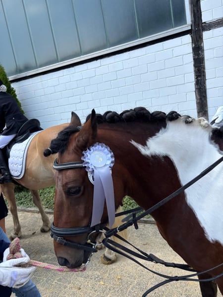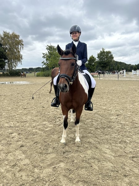 Wir suchen für unsere liebe Ponystute ein neues zu Hause. Ihre Daten: - Stockmaß 1,29 m - Schecke - dreifarbig - 01.04.2017 geboren - reinrassige Pottockstute - Barhuf - verladefromm - Ponyturnierlizenz vorhanden - demnach auch Turnier geimpft - Zähne zuletzt im März 2025 gemacht Unsere Holly wird derzeit noch von meiner 14 jährigen Tochter (1,60 m groß) geritten. Sie hat im April mit Holly den Pferdeführerschein und das Reitabzeichen 5 sicher bestanden. Ausgebildet ist sie in der Dressur und im Springen auf E-Niveau. Holly deckt auch kleinere Erwachsene sehr gut ab. Sie lässt sich aber auch von Kindern ab 5 Jahren reiten. Sie buckelt nicht, auch wenn sie mal einen Tag Pause hatte und es draußen kalt ist. Nur im Gelände gibt sie gerne mal Gas, aber nicht wenn Sie geführt wird. Da meine Tochter nun höher springen möchte, suchen wir für unsere Holly ein neues zu Hause. Sie ist bestens als Freizeitpony für ambitionierte Reiter, aber auch für absolute Anfänger geeignet. Wir könnten sie uns auch als Therapiepony sehr gut vorstellen. An der Longe und am Strick läuft sie immer sehr brav. Bei weiteren Fragen gerne per WhatsApp oder direkt anrufen. 01775066890 Sie steht in Schwerte Ergste und kann gegen eine kleine Schutzgebühr in Höhe von 25 Euro Probe geritten werden.