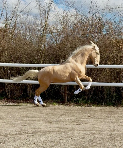 Stunning 6-year-old Pure Spanish Horse (PRE) stallion standing at 17.3 hh, Sevillano RB VII embodies elegance, strength, and nobility of the Iberian breed. Originating from carefully selected bloodlines, he displays a harmonious conformation, a modern physique, and ample, expressive, and balanced gaits—ideal for dressage and breeding. With an exceptional temperament, being very human-oriented and easy to handle daily, he passes on charisma, functionality, and high-quality movement to his offspring. ✨ Rare and sought-after Palomino coat ✨ Impressive stature with excellent presence ✨ High-quality lineage ✨ Promising progeny potential 🔹 Fresh semen available throughout Europe 🔹 Support and guidance offered 🔹 Serious conditions – breeding contract in place This stallion offers a unique opportunity for breeders aiming to enhance their stock with high-quality PRE bloodlines and an exceptional coat color.