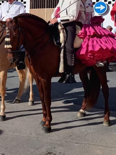 Nous proposons à la vente un magnifique étalon PRE. Ce charmant étalon séduit par son apparence baroque et son énorme charisme ! Il est parfaitement formé et maîtrise le piaffer, le passage, la pirouette, le trot et le pas espagnol. Il connaît également le travail à la main. Lors des ferias et des spectacles, il fait preuve d'une grande maîtrise et d'une grande solidité nerveuse. N'hésitez pas à nous contacter pour de plus amples informations ou pour une visite.