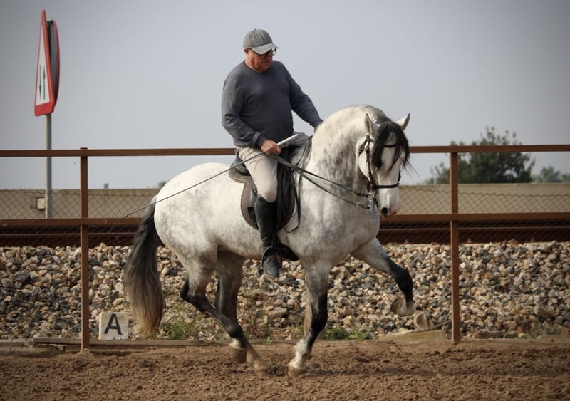 Fanom i miłośnikom starych linii uwaga: ten elegancki ogier posiada naprawdę wyjątkowo dobre pochodzenie. Jest w pełni czystej krwi rasy Cartujano, wyłącznie z pokolenia na pokolenie przekazywanym przez markę stemplową Cartujanos, czyli Hierro del Bocado. Takie pochodzenie jest dziś niezwykle rzadkie, jeśli w ogóle jeszcze istnieje. Oprócz szlachetnego rodowodu, ten wspaniały koń może pochwalić się bardzo łagodnym i niezawodnym charakterem. Jest przyzwyczajony do jazdy solo w terenie, a także do udziału w paradach i różnych wydarzeniach. Opanował podstawy półstrukturalnych przejść (bocznych odchyłów, traversów), a nawet trochę hiszpańskiego krok i passage. Wolny od czerniaka melanomowego. Lokalizacja: Hiszpania.