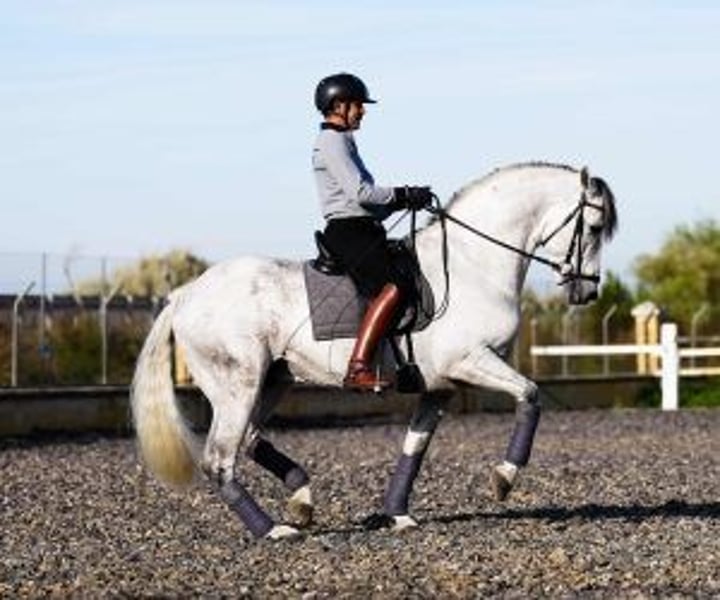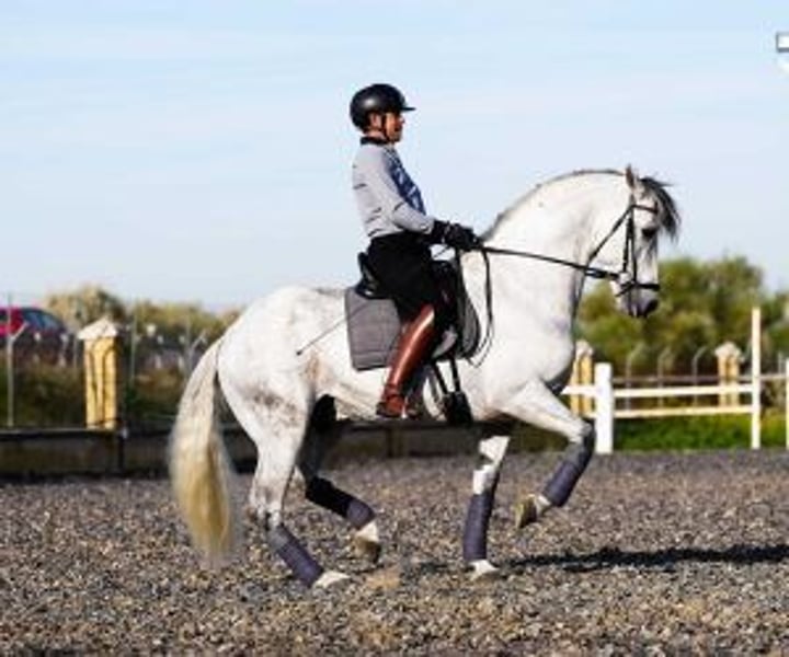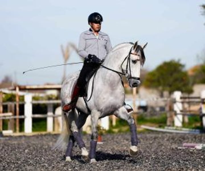 We present to you a magnificent dressage horse, whose potential is as great as his beauty and who has almost 100% Cartujane origins, a prestigious and sought-after lineage. This copy is not only a talented horse; he is the product of the training of one of the best masters of the Royal Andalusian School of Equestrian Art in Jerez. His training led him to be not only an athlete on the track, But also a reliable companion outdoors. What really makes this horse special is his wonderful attitude at work. Attentive, obedient, willing, respectful and confident, riding him is a real pleasure. Her always positive disposition and ability to respond make it the dream of every horse rider dedicated to dressage. Its elasticity, balance, amplitude and elegance are evident in every movement, showing the quality of his training and his exceptional lineage. This horse is a unique opportunity for those looking for a companion with whom they can reach the highest levels in dressage competitions, and enjoy every step of the way. Now, and for a limited time, this pearl is available at an exceptional value, making it an opportunity not to be missed. We invite you to come try it and experience the magic of its presence for yourself. With him, every training session and every competition will be moments to remember. This dressage horse is ready to shine with you. Come and discover a future full of possibilities and success.