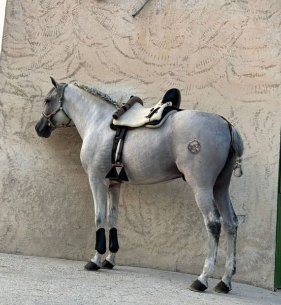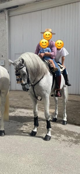 Tarugo is a classic PRE horse, embodying the traditional appearance that has characterized the Pure Spanish Horse breed since its origins. A medium-sized, baroque-type horse, he is particularly notable for his gentle temperament. We could describe him as an accomplished and artistic performer, effortlessly executing series of piaffe changes and performing excellent haute école, as well as lateral movements and pirouettes. Tarugo is a stallion, yet he is very calm and relaxed. This magnificent equine is at an ideal age for a rider of any level to enjoy, from beginners to professionals seeking to deepen their training, refine their skills, and take him even further in classical dressage and haute école, as he is very close to Grand Prix level. Since he tests negative for Piro and is a virgin, he would be an excellent export prospect for countries that require these two criteria.