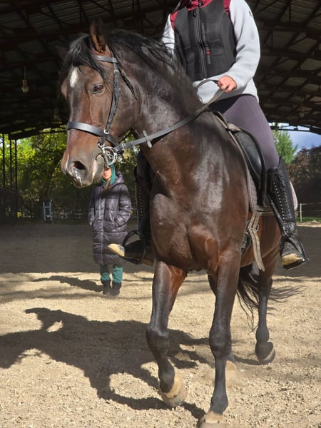 We are looking for a loving, responsible, and above all educated home for our exceptional horse, where he will be a true partner and where his potential will continue to be developed. Gandalf is a 12-year-old PRE stallion, registered in ANNCE. He is fully trained under saddle and confidently performs: • Gaits – walk, trot, canter • Transitions between gaits • Leg yield • Shoulder-in • Haunches-in • Counter canter • Flying changes (in progress) He is very willing to work and has great potential for dressage or working equitation. On the lunge, he is accustomed to voice commands as well as gesture cues. From groundwork, he has learned recall, lifting of the front legs, and turns. He has been regularly trained in desensitization, as he was originally prepared as a horse for medieval jousting tournaments. Gandalf has competition experience in dressage level Z & L. Gandalf is an extremely loving, sensitive, and people-oriented horse who forms a strong bond with his rider. He is suitable for a rider looking for a devoted, active, and hardworking partner. He is full of life, which is reflected in his way of moving – he is energetic, expressive, and has powerful, dynamic gaits. He will best match with a rider who enjoys this type of energy and joy of movement. With rough or insensitive handling, he may become startled and move forward quickly. For this reason, we are looking for an experienced and educated rider with soft hands and sensitive aids, who understands the temperament of PRE horses. He is not suitable for small children or as a school horse. Ideally, he is looking for one, maximum two riders, who will work with him regularly and build a stable partnership. Gandalf is stabled among geldings and mares (separate housing). In the past, he has also been turned out on pasture with a gelding without any issues. On trail rides, he is comfortable in group, leading the group or going alone. He enjoys moving forward and can be enthusiastic, but an experienced rider can manage him without problems. He is accustomed to rides in forests, open fields, and is confident crossing water. ✔ No health issues ✔ Regular veterinary care ✔ Teeth checked and treated annually ✔ Easy to load and transport ✔ No problems with the farrier ✔ Stands calmly, relaxed, and cooperative during grooming and handling ✔ Used to 24/7 turnout as well as stable housing ✔ Respects electric fencing ✔ No problems with other horses ✔ Very social – “a puppy in a horse’s coat” ✔ Used to farm animals, dogs, cats, and traffic Gandalf is a horse who will enthusiastically dedicate himself to dressage, working equitation, hobby sport, or can be a wonderful partner for regular activities and trail riding. He is very adaptable; however, due to his energy, regular work is very important for him. Under no circumstances will Gandalf be sold to dealers or for jumping sport, as this breed is not suitable for that type of workload. We love him deeply and our priority is to find him a home where he will be respected, properly guided, and provided with a long-term, safe, and caring environment. Please, only serious buyers contact us. We are happy to dedicate time to genuine interest, discuss further details, and provide videos upon request. Gandalf is a horse with a big heart who is looking for his person and a stable lifelong partnership. When contacting us, we speak Slovak & English. We have a contact person for German language as well, if needed.