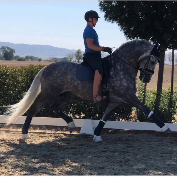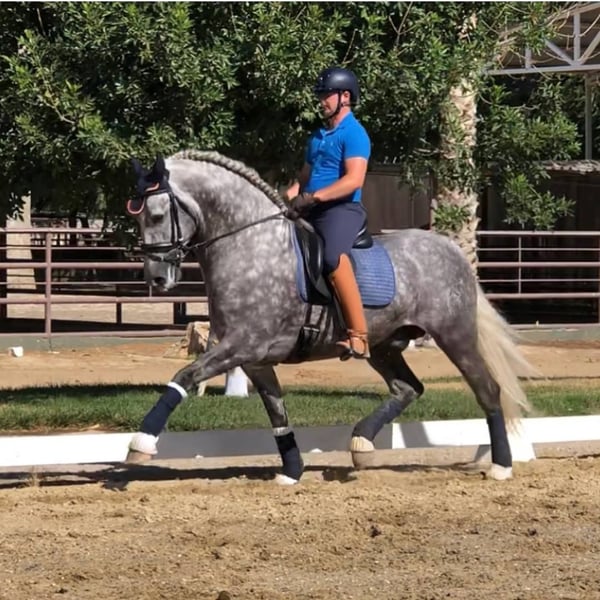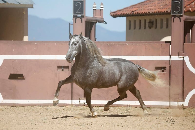 ARMAS INERVO embodies the pinnacle of excellence from the renowned breeder FLORENCIO MORENO MORENO. This majestic international champion stallion is linebred from the legendary Yeguada PLAZA De ARMAS, a cornerstone of elite Spanish dressage bloodlines. He also carries the prestigious lineage of Judio VII (Yeguada Villaire). With a breathtaking genetic index score of 114.91, INERVO stands as a paragon of the Pura Raza Española (PRE) breed, radiating power, elegance, and unparalleled presence. A decorated ANCCE champion in Spain - as Campeon Mundial, SICAB 2015, a champion of France and the United States, INERVO has dominated the show ring with limited yet illustrious appearances, securing his status among the breed’s finest. This awe-inspiring stallion is poised to elevate any breeding program or continue his ascent in the competitive arena. INERVO is your opportunity to own a living legacy, destined to leave an indelible mark on the world of PRE horses. Contact us to secure this extraordinary champion and create a breeding dynasty.