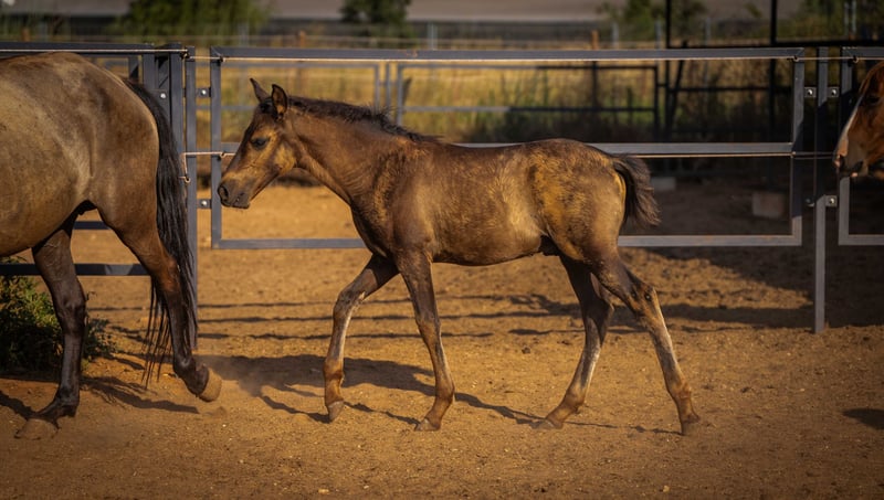 Rasse: PRE Typ: Barockpferd Geschlecht: Hengst Alter: 7 Monate Farbe: Smokey Black mit Pearl-Gen Hauptdisziplin: Barock, Freizeit Weitere Disziplinen: Dressur, Working Equitation Zuchtverband: Optional mit PRE-Papieren (ANCCE) oder ohne Weitere Merkmale: sehr barock gebaut neugierig & menschenbezogen elegante, kraftvolle Gänge aktuell roh gesund, klar im Kopf Beschreibung Lucerus ist ein außergewöhnliches PRE-Fohlen mit seltenem Farbgen – ein Smokey-Black-Hengst mit Pearl-Gen, das ihm einen faszinierenden, warmen Schimmer verleiht. Er wurde dieses Jahr geboren und ist jetzt 7 Monate jung. Lucerus zeigt sich täglich neugierig, mutig und offen im Umgang. Er sucht aktiv den Kontakt zum Menschen, lernt schnell und beobachtet aufmerksam seine Umgebung. Sein barocker Körperbau kombiniert Kraft mit harmonischen Proportionen, und seine Bewegungen sind für sein Alter bereits beeindruckend: schwebender Trab, energischer Galopp und ein sehr guter Takt. In der Herde ist er freundlich, verspielt und sozial. Stromzaun kennt er selbstverständlich. Lucerus kann mit vollständigen PRE-Papieren ausziehen – oder auf Wunsch ohne, je nach zukünftiger Nutzung und Budget. Ein ideales Fohlen für Liebhaber barocker Linien, Züchter seltener Farbgenetik oder alle, die sich ein außergewöhnlich typvolles Jungpferd wünschen. Mehr Informationen und Videos gerne auf Anfrage!