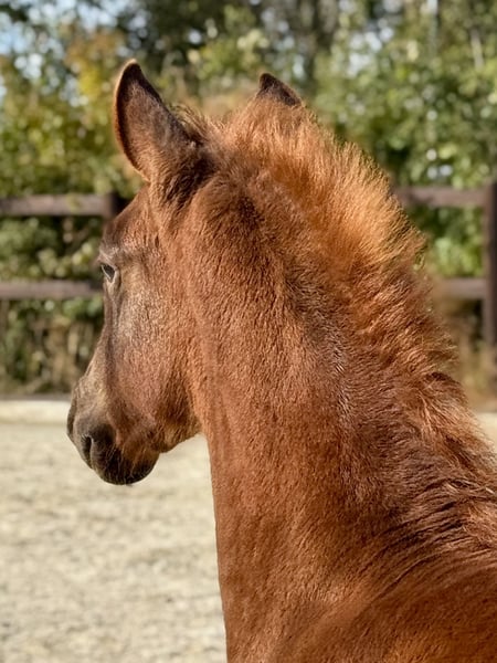 Il nostro Rojo possiede un'ottima conformazione, con movimenti eleganti e leggeri come una danza. Conquista per il suo carattere dolce e fiducioso ed è molto simpatico. Rojo padroneggia con facilità le basi del cavallo giovane. Proviene da una linea molto interessante: da parte del padre, la celebre linea di élite spagnola Crisonto GG-Cacique IX-Ermitano III, e da parte della madre, da un allevamento di élite combinato con linee antiche. Questo si riflette anche nella sua bella andatura. Non vediamo l'ora di lavorare con lui. Sospensione e raccolta sono nel suo DNA. Rojo è stato sano e vivace fin dalla nascita e si adatta amichevolmente al branco e ai puledri. Per Rojo, come per tutti i nostri cavalli, desideriamo prima di tutto una persona gentile e responsabile, che tratti sé stessa e il cavallo con cura e pazienza. I nostri cavalli sono completamente privi di malizia e hanno avuto solo esperienze positive.