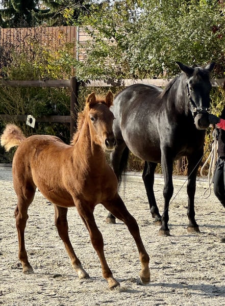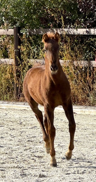 Our Rojo has a very good conformation; his movements are elegant and light as a dancer. He enchants with his gentle and trusting nature and is very likeable. Rojo masters the basics of foal training effortlessly. He comes from a very interesting lineage: on his father's side, the famous elite line of Spain, Crisonto GG-Cacique IX-Ermitano III, and on his mother's side, from elite breeding combined with old lines. This is also reflected in his beautiful movement. One can hardly wait to work with him. He is naturally endowed with swing and collection. Rojo has been healthy and lively since birth and integrates well into the herd and among the foals. For Rojo, as for all our horses, we primarily wish for a kind person with a sense of responsibility who treats themselves and the horse with care and patience. Our horses are completely unspoiled and have only had positive experiences.
