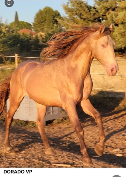 PRE-Colt with full papers for sale Videos available upon request! Primo Saint Donat, affectionately called Primo, is a very typy and charming PRE colt, born on April 3rd, 2025, and holds full registration papers. His sire is Dorado VP (ggAaEECCrNPrl), so Primo carries a pearl gene. The dam is Vera JF (buckskin). Primo is already familiar with basic foal handling. He leads well, knows grooming, hoof cleaning, and stands quietly for the farrier. He is also accustomed to being alone in the stable when the other horses are taken out for riding. Additionally, he is safe around electric fences. Currently, Primo lives in a pasture with two geldings. Previously, he was with a mare and did not show any signs of heat. He is approximately 1.42 m tall now, with an estimated final height of around 1.65 m. He is already very sure-footed and has a thick, double mane. In terms of temperament, Primo is very sweet, human-oriented, and playful. Curious, friendly, and with a little clown in him, he always brings a smile to your face. The last pictures show his dam Vera JF and his sire Dorado VP. If you are genuinely interested, we look forward to hearing from you. More information and pictures are available upon request.