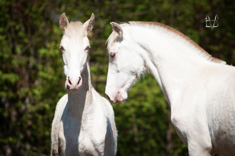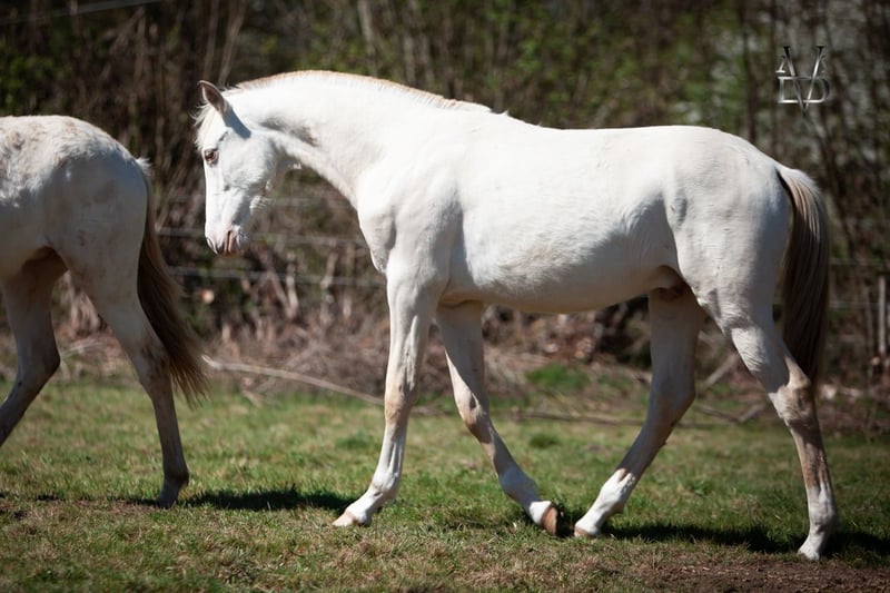 PICASSO Magnificent Isabelle Perle colt, for sale. He was born at our breeding farm in 2025. His coat color is Isabelle Perle ggEeAaCRPRL. He has a blaze on his head and four socks. He is suitable for all types of projects: breeding, leisure, dressage, etc. He is up to date on vaccinations, deworming, and farrier care. Viewable in Normandy, just two hours from Paris. Discover our breeding farm: Yeguada Los Siete Reinos.
