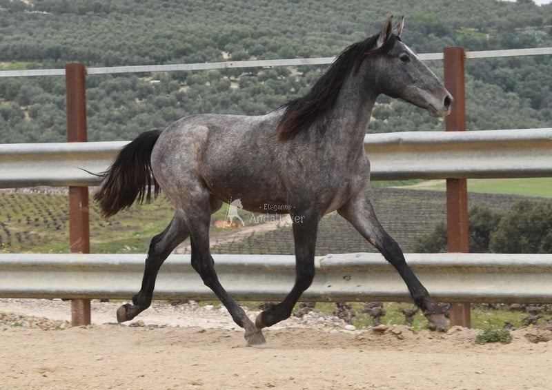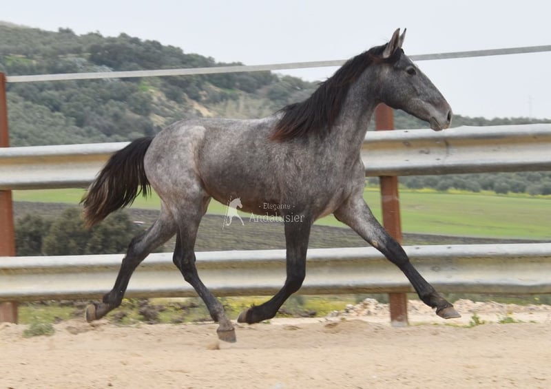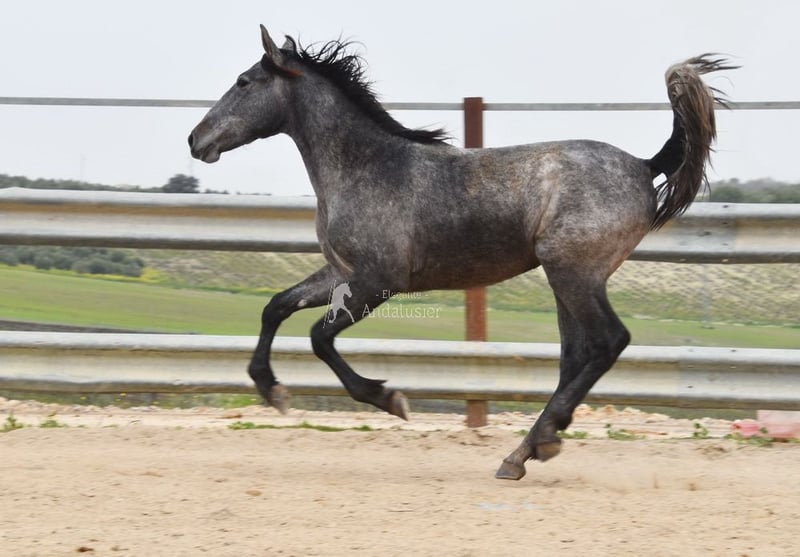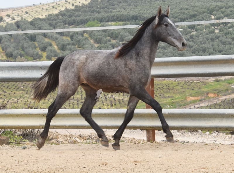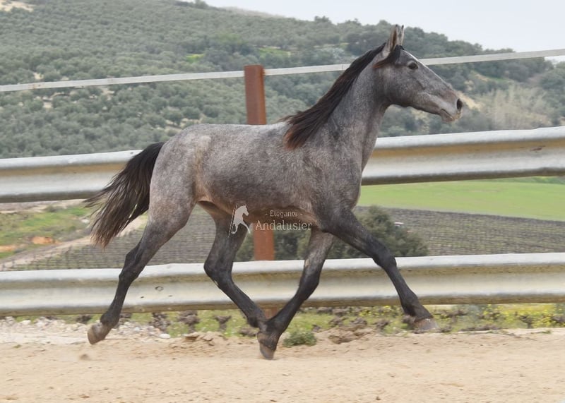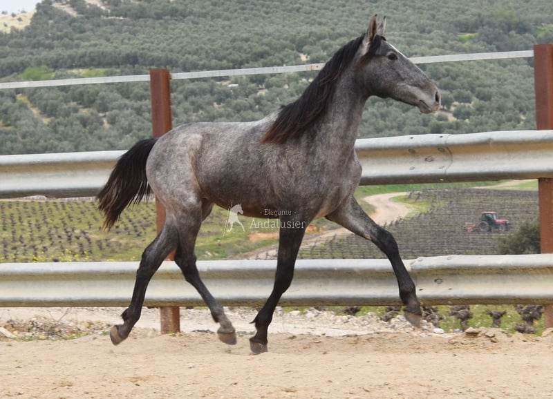 Joli jeune étalon gris PRE, bon mouvement