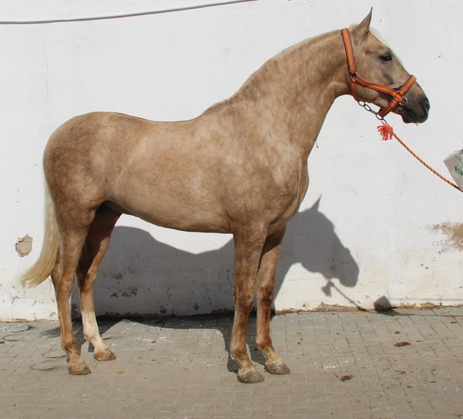 Jaranero is a 2.5-year-old PRE (Pure Spanish Horse) registered with ANCCE as a Palomino, with a genetic test available. He is a very sweet, well-balanced, and people-oriented gelding with a clear mind. Compact, strong, and elegant, he embodies the classic Spanish look. Jaranero has been lunged and has already had a saddle on, which he takes in stride with calmness and ease. If you're looking for a lifelong partner to train yourself, this handsome gelding is the perfect choice. He can also stay with us for further training upon request. An ultrasound examination can be arranged. International transport organized. Videos available upon request.
