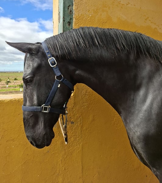 Jeune colt de race pure espagnole, doté de bons mouvements, noble et beau.