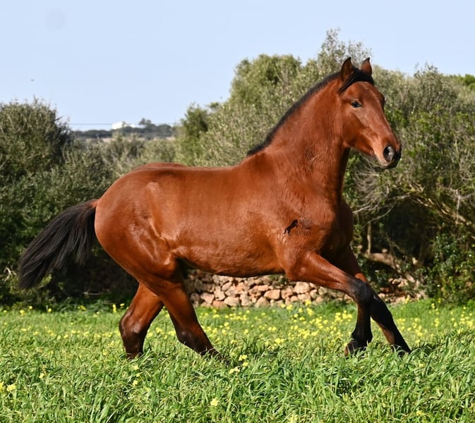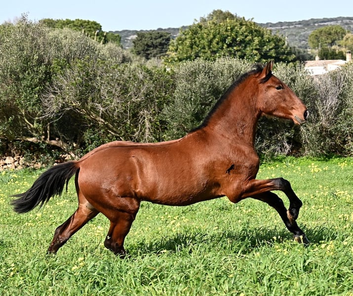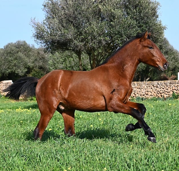 Dieses im Sommer 2024 geborene PRE-Hengstfohlen (Andalusier mit Rassenachweis der ANCCE), ist jetzt schon ein richtiger Hingucker! Er lebt 24h in Robusthaltung und hat Dank Menorcas harter Böden, eine richtig gute Hufqualität und ist gut gefesselt. Obwohl er so robust lebt, ist er unheimlich verschmust und kommt sofort freundlich den Kontakt suchen, wenn man auf die Koppel kommt. Seine Abstammung lässt die Freunde des spanischen Pferdes, sofort höher schlagen! Väterlicherseits ist er SENILLOSA gezogen, mit ESCALERA in den Ahnen. Mütterlicherseits ist er ein Enkel von DARTURO III, der aus der RETAMALES Zucht kommt, wobei seine Mama auch PLAZA DE ARMAS, sowie CAMPO BAJO Blut in sich hat. Diese hervorragende Zuchtauswahl, macht sich in ihm bemerkbar, denn er ist nicht nur jetzt schon schön mit einem rassetypischen Kopf und barocken Exterieur, sondern hat auch eine tolle Bewegung, die er totz der steinigen Böden gut präsentiert. Ein glückliches Nachwuchspferd zu einem fairen Preis für diese Qualität. Sein Papa misst 170cm und auch er wird ein größerer Bub werden. Aktuell steht er auf Menorca! Videos und Abstammung gerne auf Anfrage. Gerne organisiere ich vor Ort eine Fohlen-AKU, Transport oder auch ihre Reise, sollten Sie persönlich zum Anschauen kommen. Details dazu gerne auf meiner Seite oder im Gespräch. Saludos aus Spanien