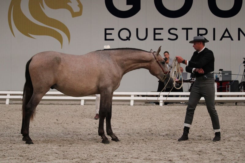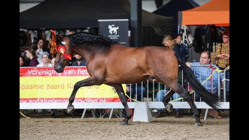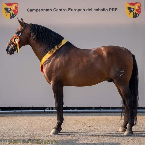 Bohemio is een jonge PRE hengst, geboren op 06/06/2023 als zoon van Quien de Susaeta (foto's 8 & 9) en Ventolera Cum (foto's 10 & 11). Zijn beide ouders werden veelvoudig kampioen op de Campeonato Centro Europeo, en Bohemio is duidelijk van plan om in hun voetsporen te treden. Dankzij een sterke, actieve achterhand heeft hij een bijzonder goede stap, een zeer ruime draf en een knappe opwaartse galop. Bohemio is dynamisch en sportief maar absoluut geen zenuwachtig type. Ook op verplaatsing en in wedstrijdomgeving blijft hij steeds zijn coole zelf. Actuele stokmaat Bohemio : 1m62 – vermoedelijke eindstokmaat 1m70 Bohemio kan bij ons gecastreerd worden indien gewenst. Wij zijn zelf dierenarts en kunnen hem ook na de castratie volledig opvolgen.