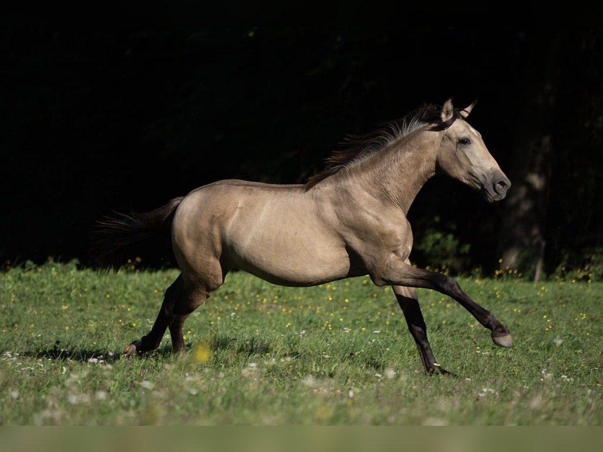 Dreamy PRE Stallion in Buckskin We are offering an exceptional PRE stallion for sale, born in 2024. This stunning baroque stallion captivates with his noble buckskin coat and impressive presence. **Features:** - **Breed:** Pura Raza Española (PRE) - **Gender:** Stallion - **Year of Birth:** 2024 - **Coat Color:** Buckskin - **Type:** Baroque The stallion is characterized by his gentle and friendly nature. He is well-socialized and already shows great potential for various disciplines. His elegant movement and charming demeanor make him an ideal partner for ambitious riders and breeders. If you are interested or would like more information, we look forward to hearing from you. Feel free to visit us to meet this special stallion in person!